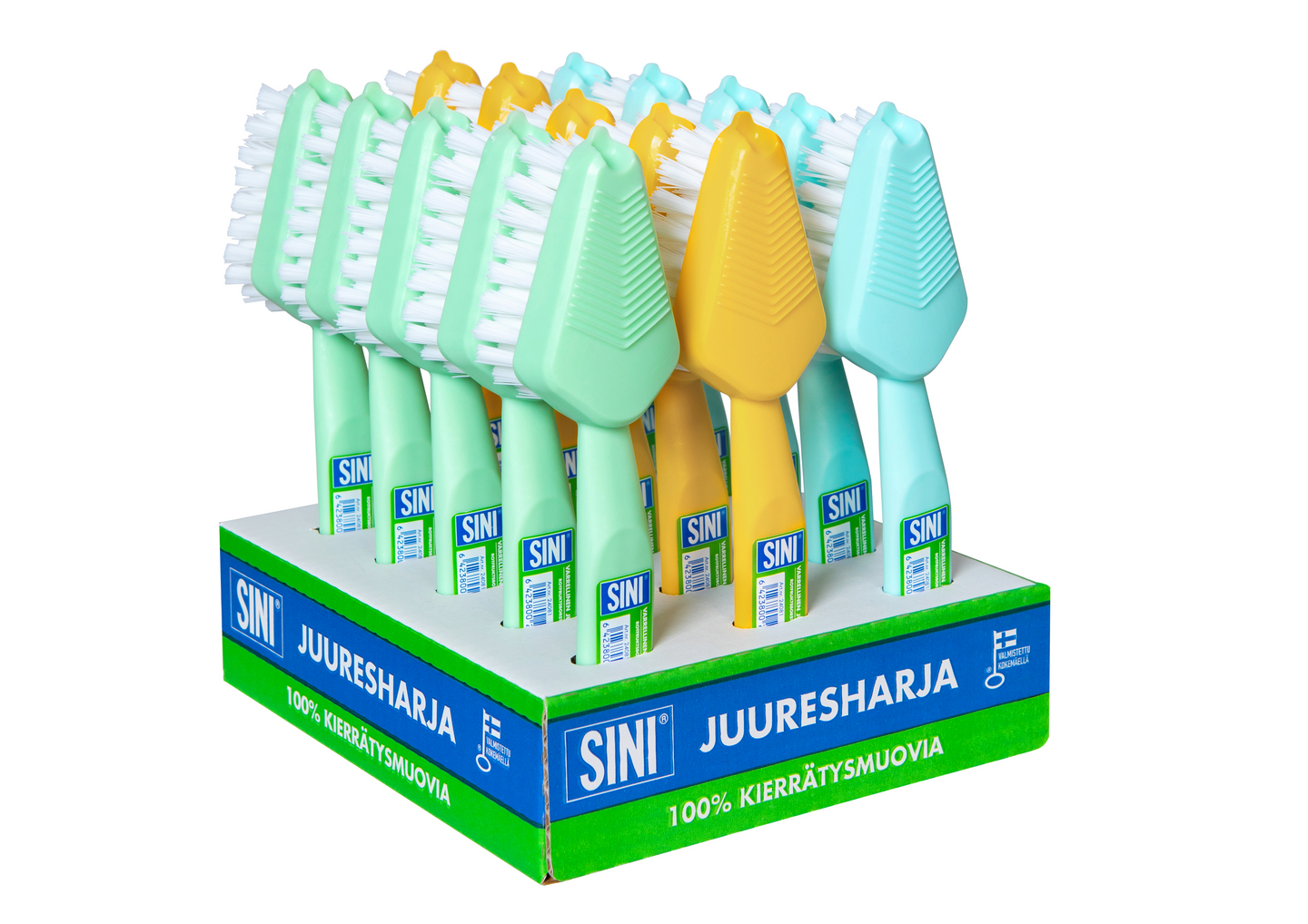 Varresta saa pitävän otteen, joka suojaa sormia. Napakka harjas poistaa kuoret helposti. Helppo ripustaa kuivumaan koukusta.