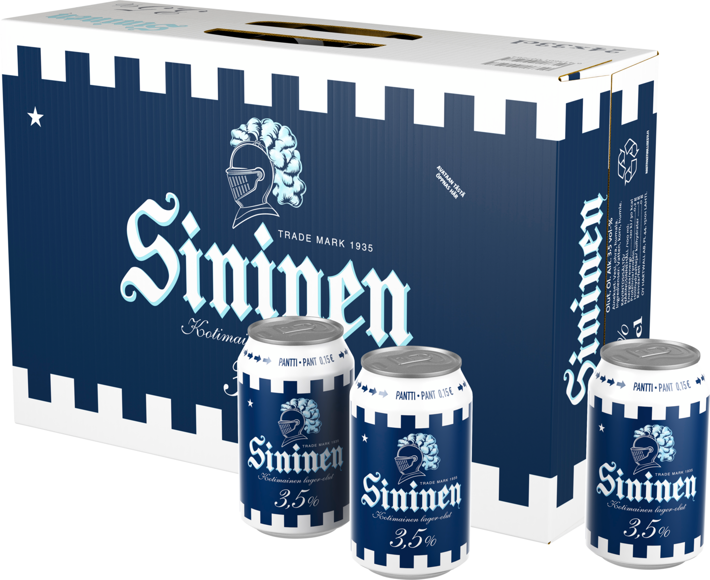 Sininen on aito suomalainen lager, jota valmistettiin ensimmäisen kerran jo vuonna 1935. Perinteikästä Sinistä on kutsuttu oluiden aateliseksi, eikä syyttä. Alkoholiprosentiltaan miedompi Sininen 3,5% on kevyt ja raikas kotimainen lager-olut. Ruokasuosituksena makkarat sekä muut suolaiset naposteltavat. Tarjoillaan hyvin viilennettynä, 6-8 -asteisena.
