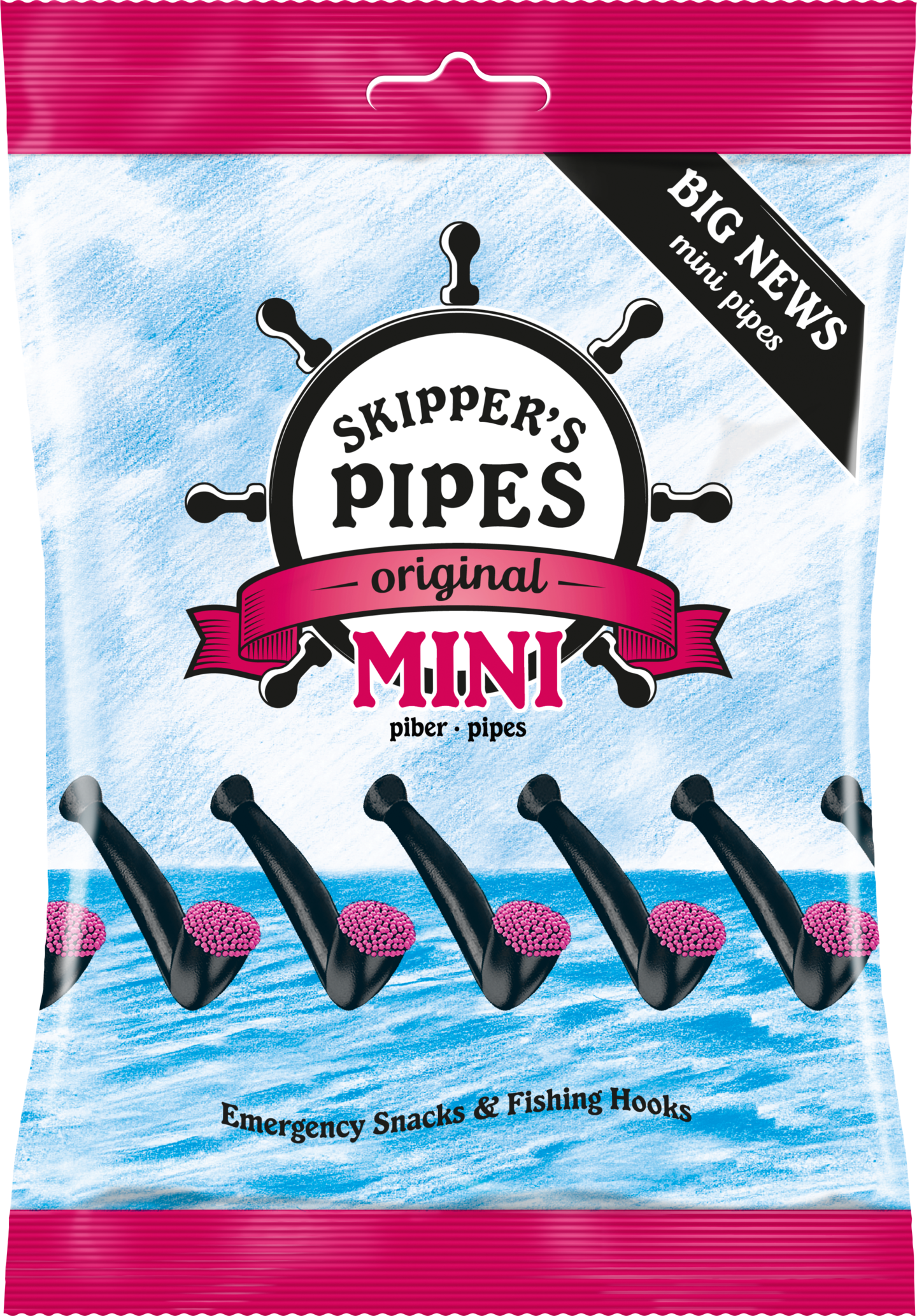 Kipparit ohoi! Pussillinen lakritsia paapuurin puolella! Skipper’s Mini Pipes Original -pussi sisältää aitoja ja aina yhtä herkullisia Kipparin lakuja uudessa, pienemmässä koossa. Ihanan pehmeät ja pinkein nonparellein koristellut pikkulakut on suunniteltu tyydyttämään pientä lakun himoa - tai suurta, sillä ne tulevat 192 gramman pussissa.