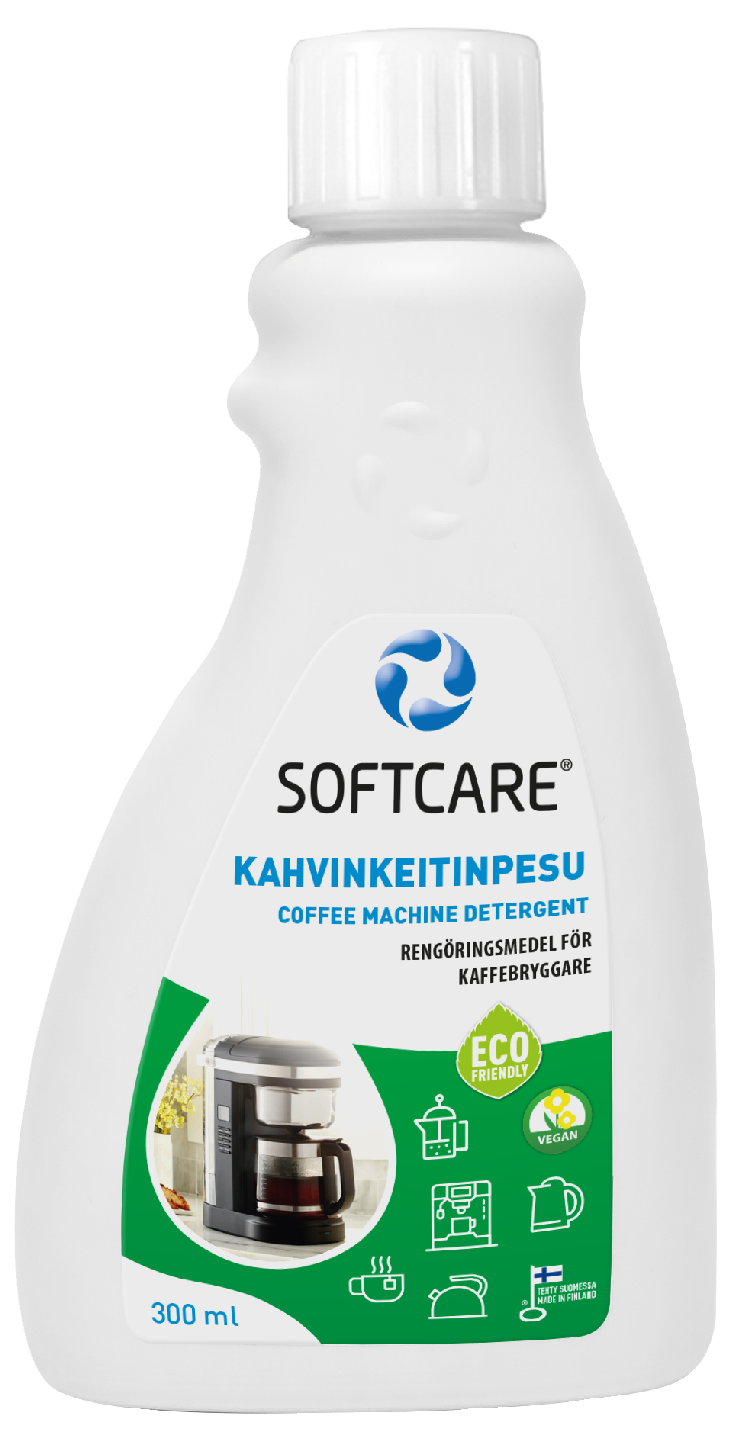 Ekoinnovatiivinen kasvipohjainen kahvin- ja teekeittimien sekä automaattien erikoipuhdistusaine. Poistaa Kahvirasvan ja tee pinttymät. Lisää pesuainetta keittimen vesisäiliöön 40–50 ml ja täytä säiliö täyteen vedellä. Käynnistä pesuohjelma tai keitin. Tee lisäksi kaksi huuhtelukertaa pelkällä vedellä. Soveltuu rasvaisen ja pinttyneen lian pesuun esim. kahvi/tee kupit ja pannut, anna vaikuttaa noin 5-15 min likaisuudesta riippuen. Biohajoava.
