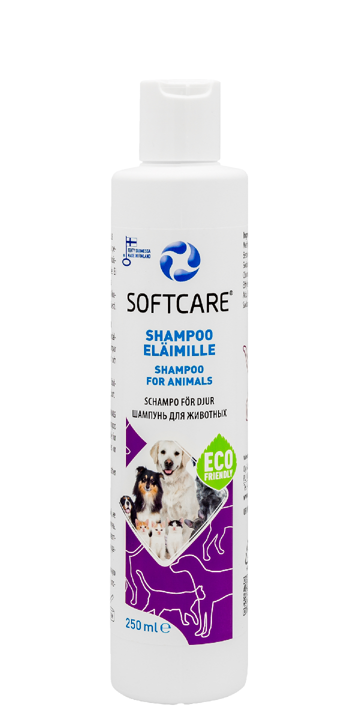 Softcare Eläinshampoo on hellävarainen eläinten turkinpesuun tarkoitettu sulfaatiton erikoisshampoo. Sopii kaikille eläimille. Ei sisällä hajusteita eikä väriaineita