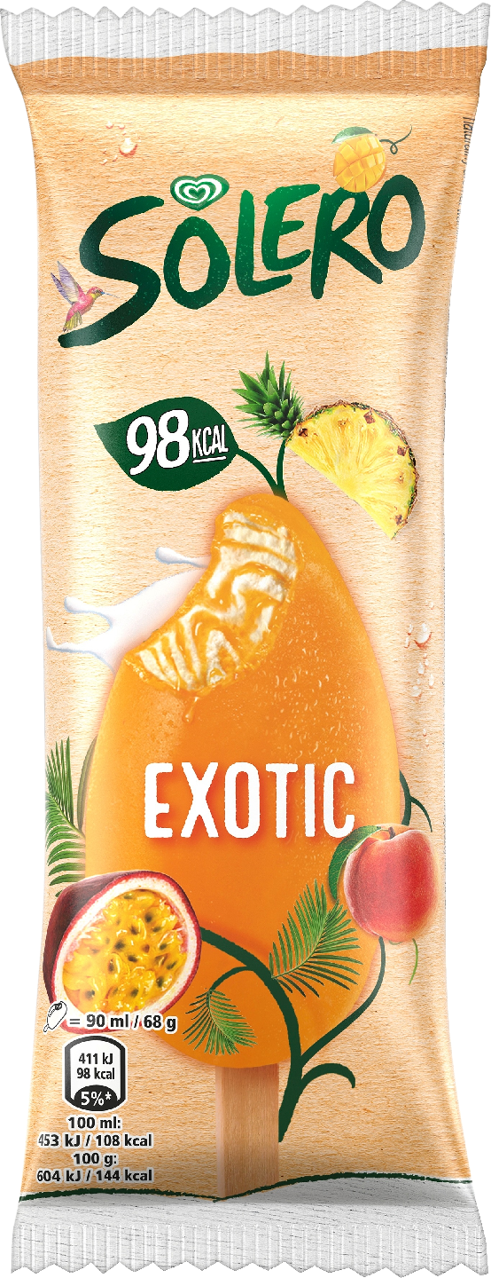 Raikas Solero Exotic -jäätelöpuikko on hedelmien ystävän valinta. Solero on jäätelö, joka ei sisällä keinotekoisia väri- tai makuaineita. Jäätelön maku on herkullisen hedelmäinen ja energiaa on enintään 98 kcal. Raaka-aineina käytettävät hedelmät ovat peräisin tuntemistamme luotetuista lähteistä – kestävästi toimivilta viljelmiltä, joilla tehdään töitä ympäristöä kunnioittaen. Todellisille Solero-puikkojäätelön faneille suosittelemme monipakkausta, joka sisältää 3 kappaletta Solero Exoctic -jäätelöpuikkoja. Tutustu myös 900 ml Solero-jäätelöpakettiin. Jäätelö on superhelppo, ihanan viileä jälkiruoka, joka maistuu lähes jokaiselle, niin lapsille kuin aikuisille. Jäätelö on ratkaisu pieneen makeannälkään tai silloin, kun saat yllätysvieraita ja haluat hieman juhlistaa tilaisuutta. Jäätelö ilostuttaa päivän pienissä hetkissä ja nostaa tavanomaisenkin ruokailun arjen yläpuolelle. Eniten jäätelöä syödään kesäkuukausina, mutta useimpien mielestä jäätelö maistuu yhtä hyvälle vuodenajasta riippumatta. Muista, että jäätelö säilyy parhaiten -18 asteen lämpötilassa tai kylmemmässä. Moni tykkää jäätelöstä pakastinkylmänä, kun taas toiset antavat jäätelön sulaa huoneenlämmössä hetken ennen nauttimista – jos vain malttavat. Jäätelövalikoimastamme löytyy tuttuja klassikoita ja jännittäviä uutuuksia, joita kehitämme muuttuvien makujen mukaan. Jäätelöillämme on vahva yhteys kaikenikäisten jäätelörakastajien kanssa ja haluamme olla mukana ilon hetkissä. Unileverin jäätelöt luovat päivittäin ympäri maailmaa onnenhetkiä ihmisille. Juhlistamme tätä toimintaa sponsoroimalla virallisesti Yhdistyneiden kansakuntien kestävän kehityksen ratkaisuverkoston (SDSN) onnellisuusraporttia. Olemme tuoneet ihmisiä yhteen jäätelön avulla ja levittäneet onnellisuutta sosiaalisten yhteyksien kautta. Sponsorointisopimus on uusin askel Unileverin sitoutumisessa kansallisten onnellisuustasojen nostamiseen. Se on osa meidän pyrkimystä korostaa ihmisten välisten sosiaalisten yhteyksien merkitystä onnellisuuden lisäämisessä.