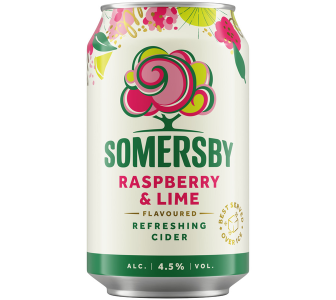 Somersby Raspberry & Lime on hedelmäinen uutuus Somersbyltä. Makeat vadelmat ja limen happamuus luovat herkullisen kontrastin makuun ja tuote sopii täydellisesti pirskahtelevaksi kesäjuomaksi.