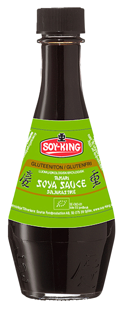GluteenitonSoy-King Tamari Luomu on gluteeniton soijakastike, jonka täyteläinen maku korostaa raaka-aineiden omaa makua ja tuo esille niiden parhaat puolet. Se tuo helposti ja nopeasti makua sekä väriä ruokaan. Kokeile Soy-King soijakastiketta marinadeissa, kastikkeissa ja aasialaisissa ruoissa. Käytä myös pöytämausteena suolan sijaan.