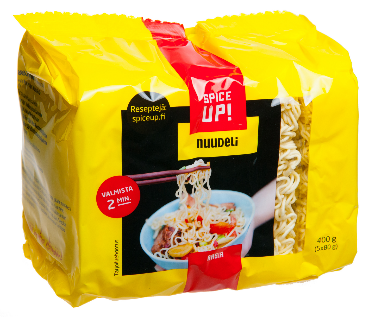 VegaaninenSpice Up! Nuudelit valmistuvat hetkessä. Ne sopivat keitettynä ja paistettuna lisäkkeeksi