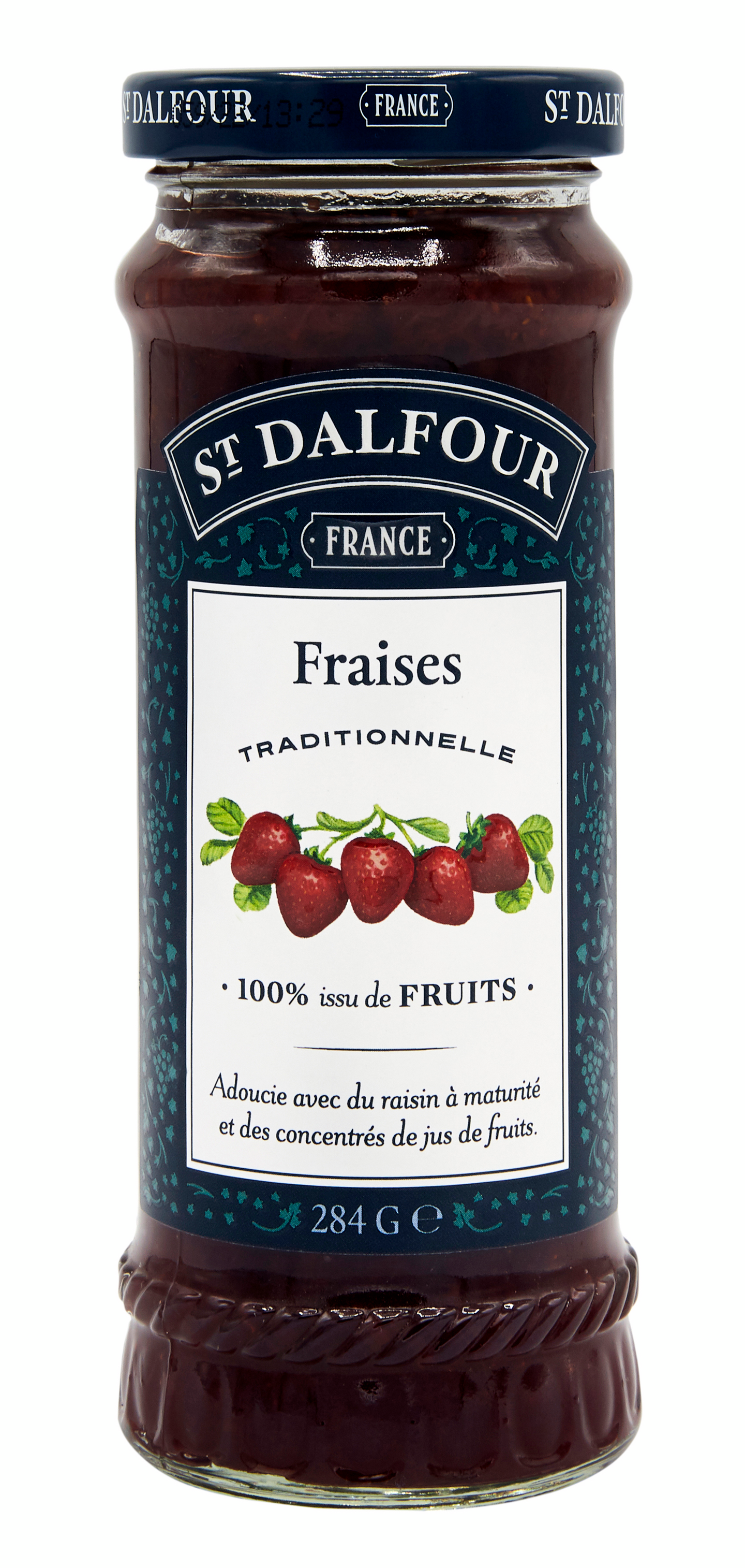 VegaaninenSt. Dalfour hillot valmistetaan perinteisellä ranskalaisella reseptillä. Luonnollista makua vaalien hillot on keitetty hellävaroen kokonaisista ja laadukkaista hedelmistä ja marjoista. Hilloihin ei lisätä valkoista sokeria, vaan ne makeutetaan hedelmämehutiivisteellä. Ne eivät kuitenkaan ole sokerittomia. Hillot eivät sisällä keinotekoisia säilöntä- tai väriaineita. Kokeile St. Dalfour Mansikkahilloa paahtoleivän päällä, täytekakkujen ja kääretorttujen välissä sekä murojen, jäätelön, jogurtin, viilin, pannukakkujen tai ohukaisten kanssa. St. Dalfour Mansikkahillo sopii myös vuohenjuuston seuralaiseksi.