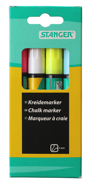 Stanger liitutaulutussi 3mm pyöreä kärki 4 väriä nestemäinen