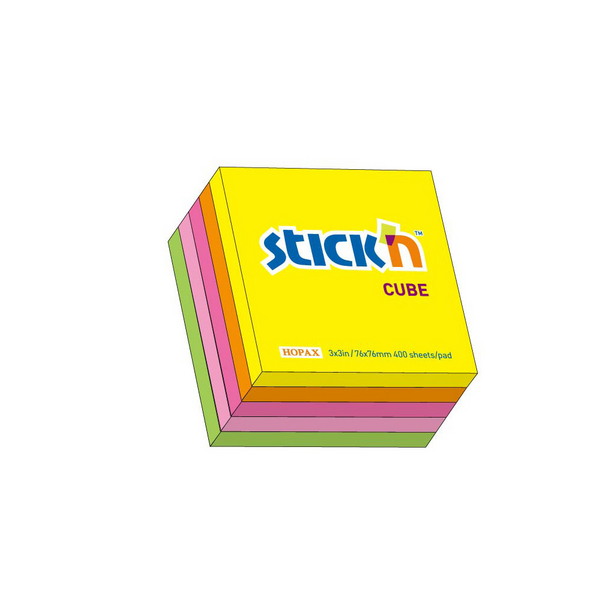 Stickn viestilappukuutio 76x76mm 5 neonväriä 400 lappua