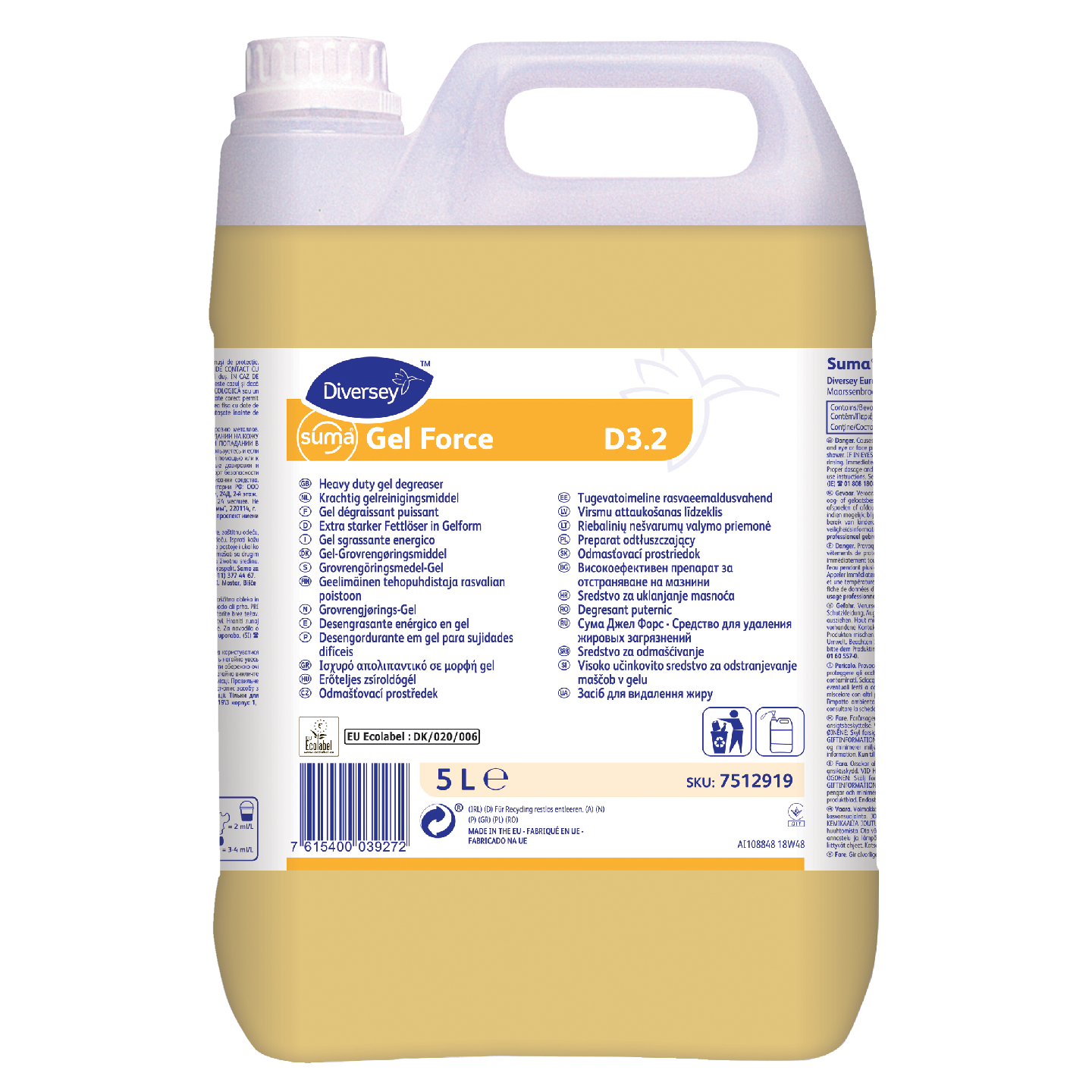 Suma Gel Force D3.2 on nestemäinen emäksinen puhdistusaine erityisesti rasvalian poistoon. Geelimäisen koostumuksensa ansiosta tuote vaikuttaa pinnoilla pitkään ja puhdistaa näin ollen erityisen tehokkaasti. Tuote on suunniteltu ammattikeittiöiden sekä kosteiden tilojen kaikkien vettä sietävien kovien pintojen päivittäiseen, ympäristömyötäiseen puhdistukseen. Suma Gel Force D3.2 on ympäristömerkitty (EU-Kukka). Ainoastaan ammattikäyttöön.