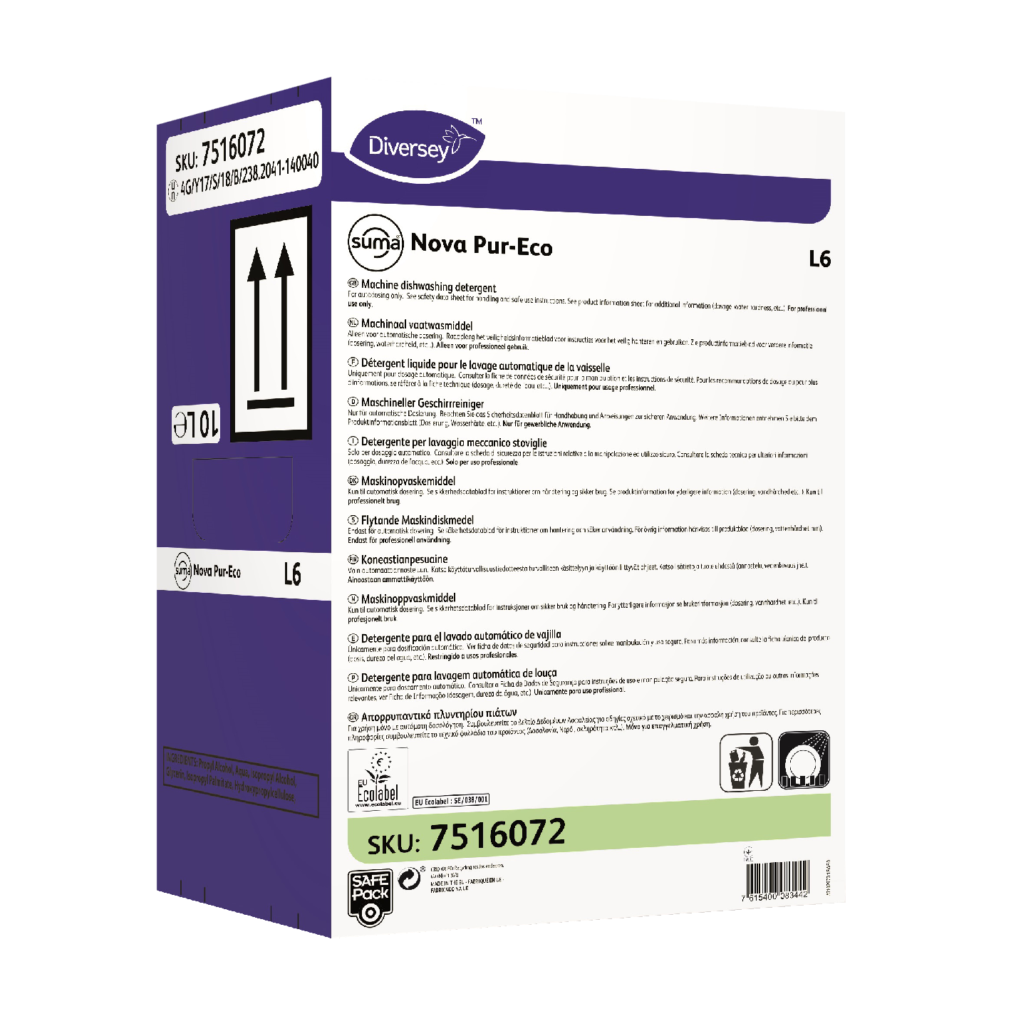 Suma Nova Pur-Eco L6 on tehokas nestemäinen pesuainetiiviste koneelliseen astianpesuun. Ainoastaan ammattikäyttöön.