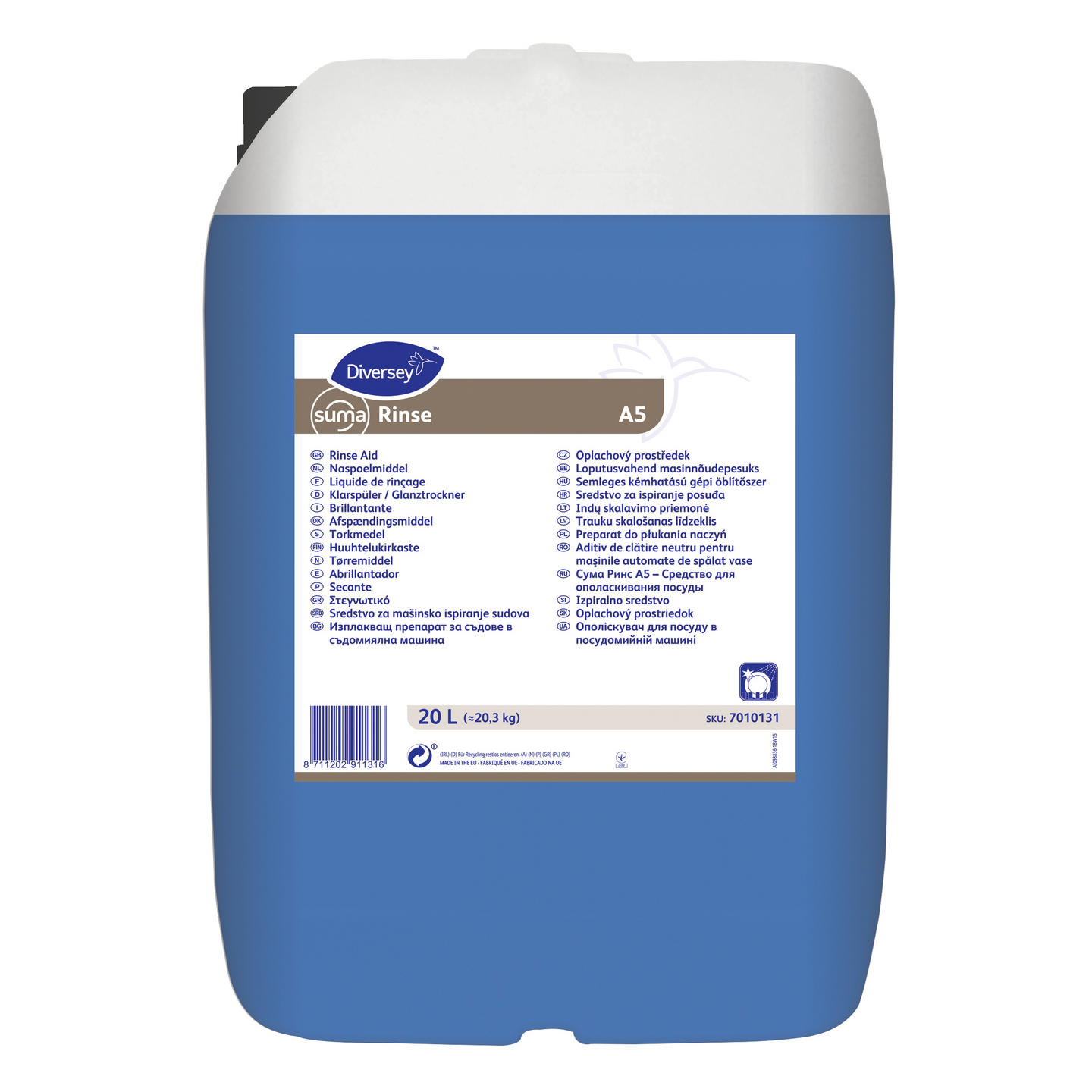 Suma Rinse A5 on nestemäinen, matalavaahtoinen huuhtelukirkaste koneastianpesuun. Ainoastaan ammattikäyttöön.