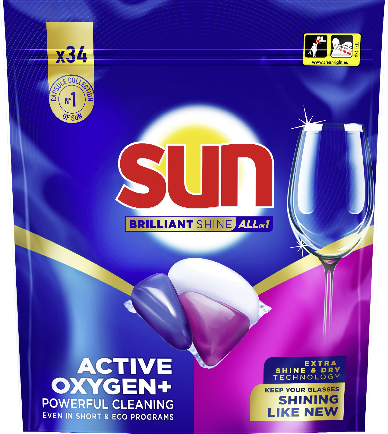 Sun Brilliant Shine -konetiskitabletti on tehokas jo pikapesussa eli pesukoneen pika- ja lyhytohjelmissa. Tahraton tulos myös eko-ohjelmien alhaisemmissa lämpötiloissa. Ei tarvetta huuhtelulle, mikä tarkoittaa pienempää energiankulutusta ja pienempää vedenkulutusta. Muita konetiskiaineita saatat joutua täydentämään muilla tuotteilla. Sun All-in-1 on konetiskikapseli, joka tekee kaiken työn yhdellä tabletilla: rasvanpoisto, kalkinpoisto, astianpesukonesuola ja huuhtelukirkaste, joten myös pesukoneen puhdistus hoituu samalla ja pesukone voi hyvin.
