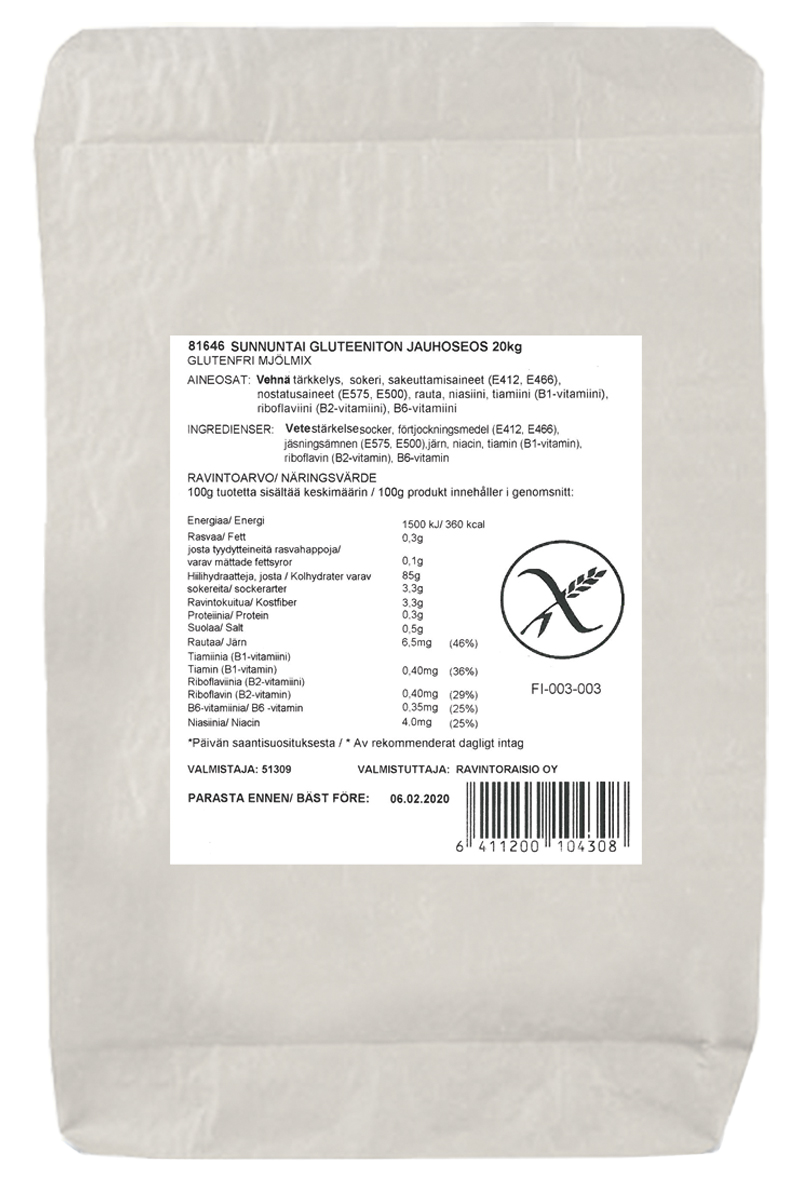 Sunnuntai gluteeniton jauhoseos 20kg