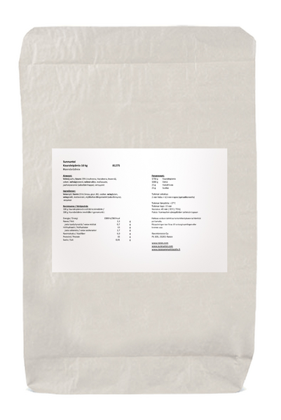VegaaninenRunsaasti kauraa (25%) sisältävä suolaton leipäjauhoseos kauraleipien, patonkien ja sämpylöiden valmistukseen. Valmista tuotetta noin 325 kpl (sämpylä). Suositusannos n. 50 g (sämpylä).