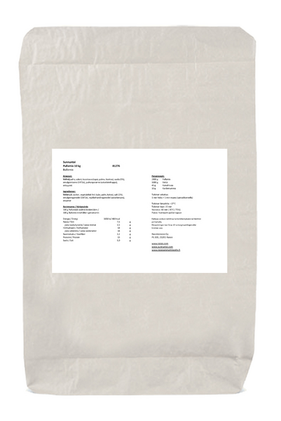 VegaaninenKasvirasvapohjainen kahvileipäseos pitkojen, pikkupullien, munkkien, marjapiirakoiden ja korvapuustien valmistukseen. Valmista tuotetta noin 290 kpl (pikkupulla). Suositusannos n. 50 g (pikkupulla). Säilyvyys 8 kk.