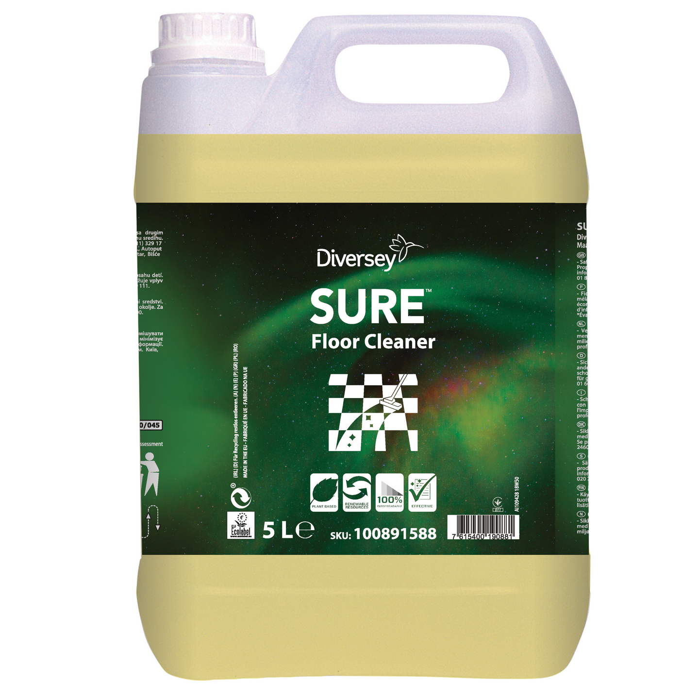 SURE Matalavaahtoinen yleispuhdistusaine on osa ainutlaatuista kasvipohjaista, 100 % biohajoavaa ammattikäyttöön tarkoitettua tuotesarjaa. Heikosti emäksinen SURE Matalavaahtoinen yleispuhdistusaine on tehokas, mutta turvallinen. Se soveltuu kaikkien vettä sietävien kovien pintojen puhdistamiseen käsi- ja konemenetelmiin. Ainoastaan ammattikäyttöön.