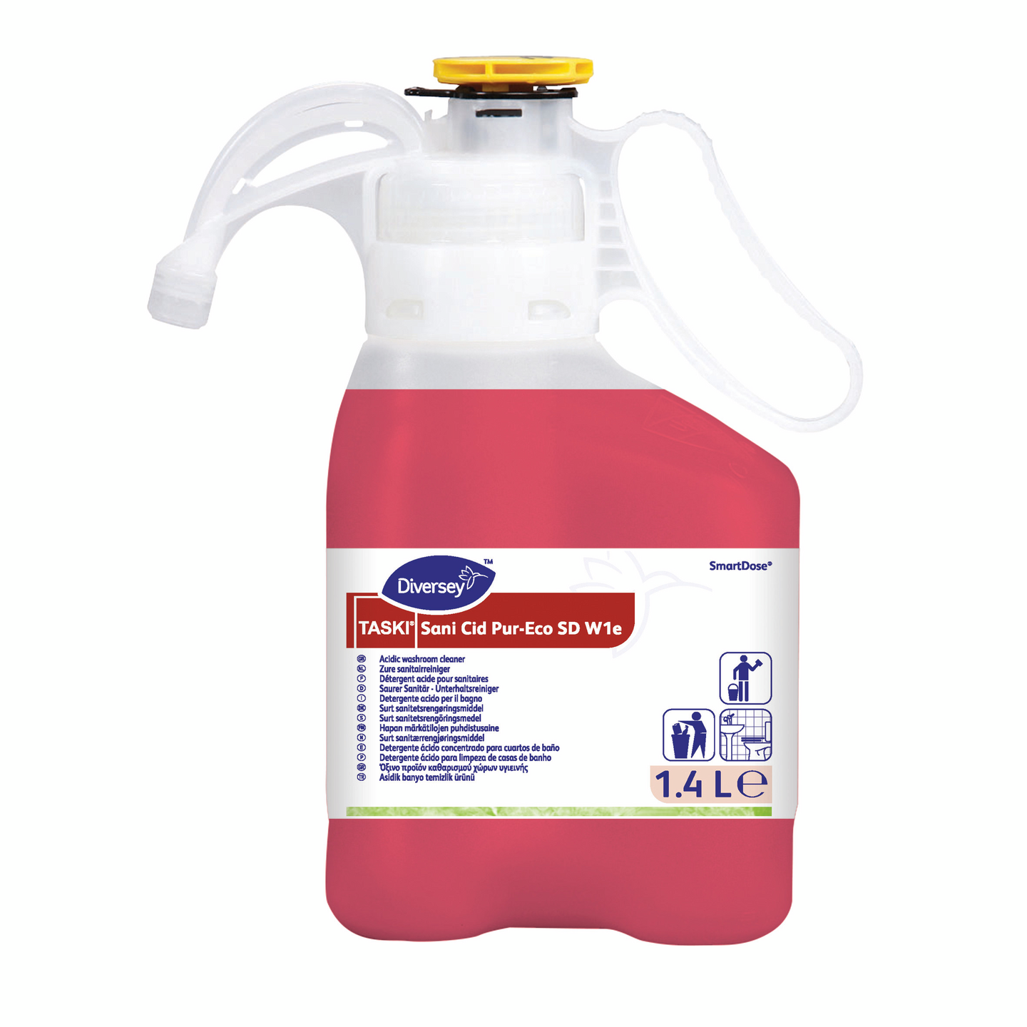 Hapan puhdistusaine saniteettitilojen päivittäiseen ja jaksottaiseen puhdistamiseen happamia aineita kestäviltä pinnoilta. Ainutlaatuisessa SmartDose-annostelupullossa. Raikas sitruunan tuoksu, sisältää väriainetta. Ainoastaan ammattikäyttöön.