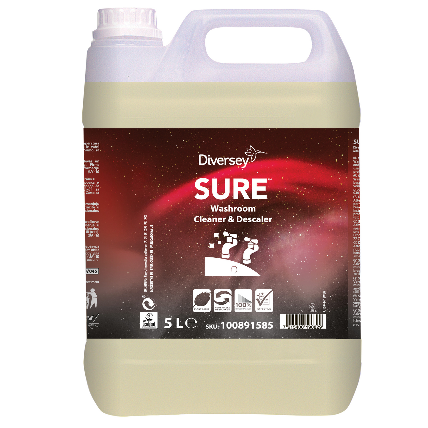 SURE Saniteettitilojen puhdistus- ja saostumienpoistoaine on osa ainutlaatuista kasvipohjaista, 100 % biohajoavaa ammattikäyttöön tarkoitettua tuotesarjaa. Hapan SURE Saniteettitilojen puhdistus- saostumienpoistoaine on kehitetty päivittäiseen puhdistukseen kovan veden alueille sekä jaksottaiseen saostumien poistoon/ ehkäisemään saostumien syntymistä pehmeän veden alueilla. Ainoastaan ammattikäyttöön.