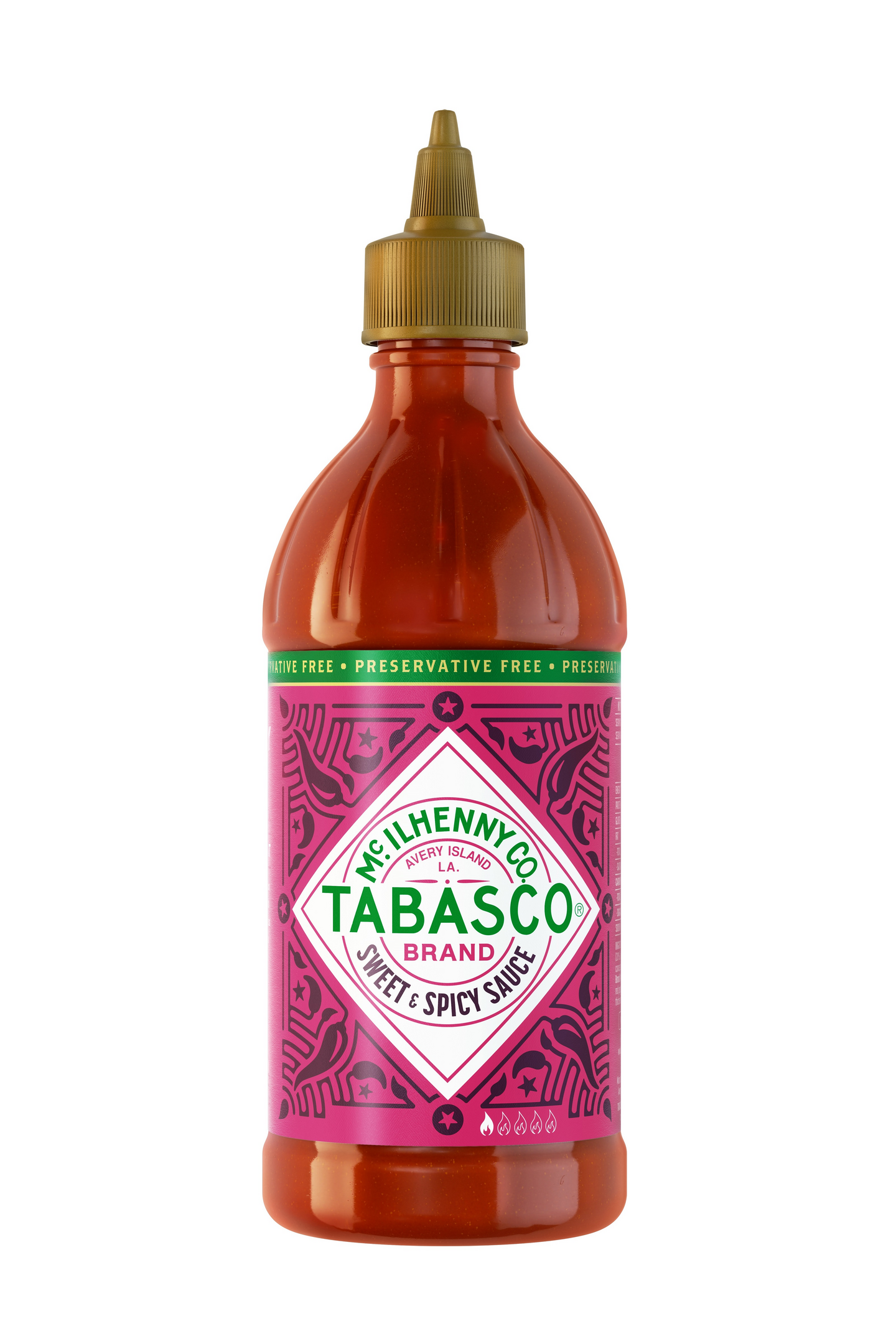 Sokeri, punainen chili (20%), vesi, etikka, päärynätiiviste, valkosipuli, sipuli, Tabasco® -kastike (etikka, punainen chili, suola), inkivääri, suola, sakeuttamisaine: ksantaanikumi ja mausteet.