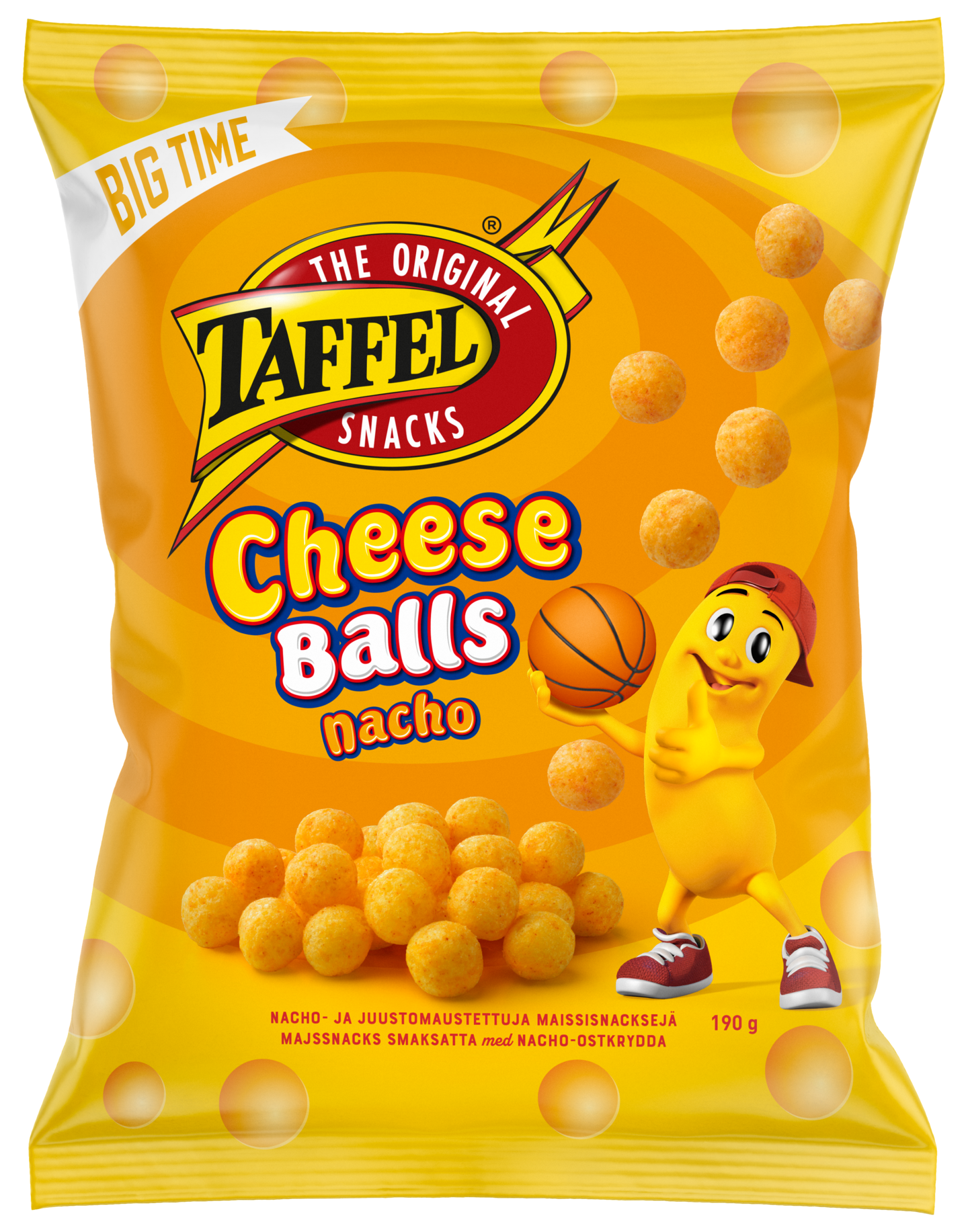 Rapea Taffel Cheese Balls Nacho on ihanan pyöreänmakuinen, aidossa nachomaustetussa juustossa pyöritelty maissiherkku. Tämä snacks on kuin naksu, joka on muodoltaan pallo.