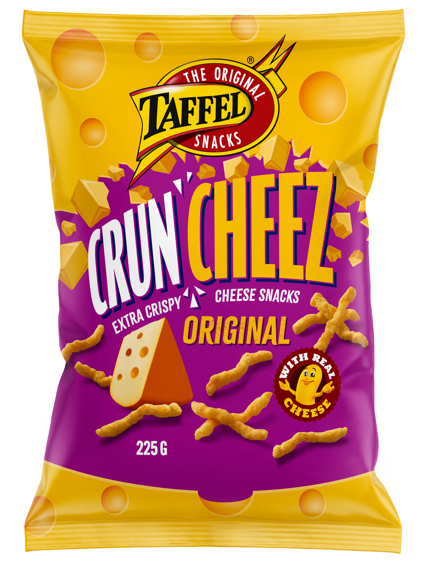 GluteenitonTämä herkullinen juustosnacks on niin rapea kuin juustosuikero voi ikinä olla. Ai että! Jokainen suikero on erilainen, mutta ytimiään myöten taivaallisen juustoinen. Taffel CrunCheez on tarkoitettu Juustonaksufaneille, jotka eivät tee maun suhteen kompromisseja. Maista!
