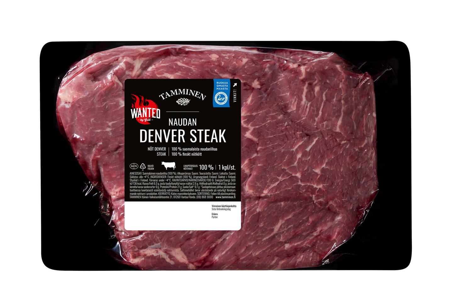Tamminen Naudan Denver Steak valmistetaan amerikkalaistyylisellä leikkuumenetelmällä 100 % suomalaisesta naudan etuselästä. Mehukas ja murea Denver Steak omaa täyteläisen lihaisan maun sekä rakenteen, ja se suositellaan tarjoiltavan medium-asteisena. Voidaan valmistaa kokonaisena grillissä grillaten tai pannulla paistaen. Soveltuu jaettavaksi pääruoaksi kauden lisukkeiden kera.