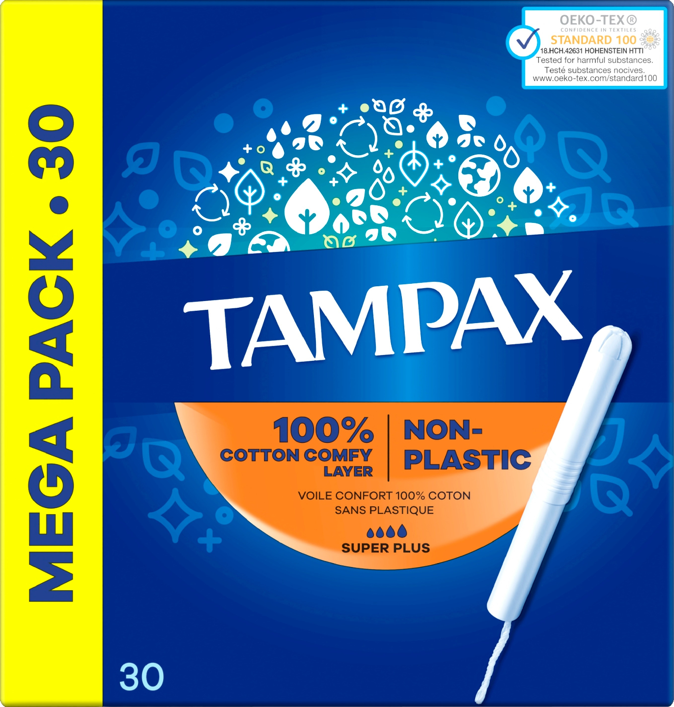 Pahvisella asettimella varustetut Tampax Super Plus -tamponit auttavat pitämään olosi puhtaana ja varmana. Ne ovat muovittomia tamponeja, jotka eivät sisällä hajusteita tai väriaineita. Tampax-tamponien imukykyinen ydin ja vuotoja ehkäisevä helma tarjoavat lisäsuojaa. Pahvisen asettimen luistamaton pinta tekee asettamisesta helppoa. Tamponin ytimessä on miellyttävä 100 % puuvillakerros. Tampax Super Plus -tamponit pahvisella asettimella runsaaseen vuotoon. Tampax-tamponit ovat gynekologisesti testattuja. Ne on myös testattu riippumattomassa tutkimuslaitoksessa Oeko-Tex-standardin mukaisesti ja ovat tutkitusti haitta-aineettomia. Puhdas ja varma olo. Kokeile Tampax Pearl Compak -tamponia – Tampaxin parasta mukavuutta ja suojaa. Lisätietoja Tampax-tuotteista löydät Tampaxin kotisivuilta.