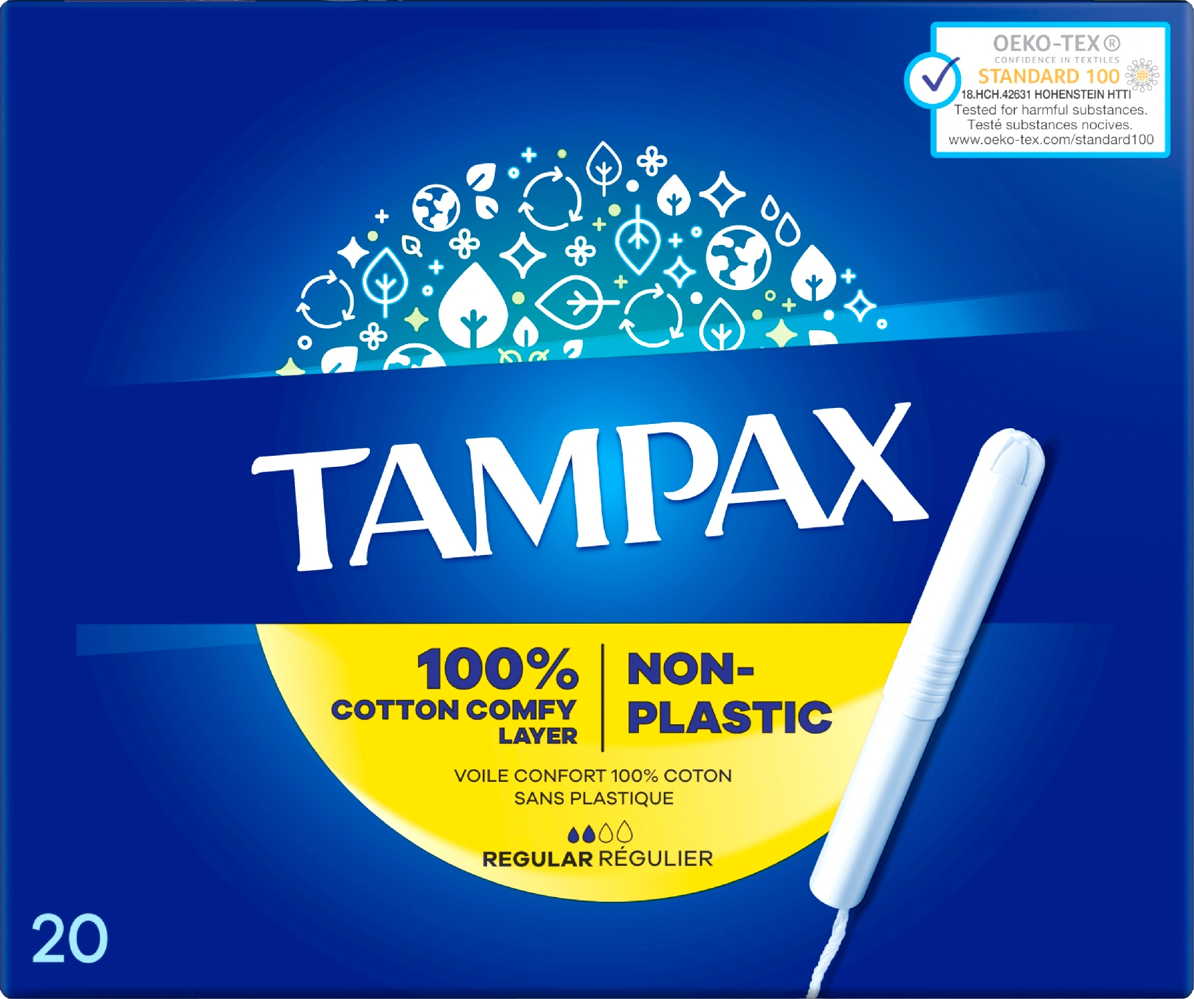 Pahvisella asettimella varustetut Tampax Regular-tamponit auttavat pitämään olosi puhtaana ja varmana. Ne eivät sisällä hajusteita tai väriaineita. Tampax-tamponien imukykyinen ydin ja vuotoja ehkäisevä helma tarjoavat lisäsuojaa ja pahvisen asettimen luistamaton pinta tekee asettamisesta helppoa. Tampax Regular-tamponit on tarkoitettu niukasta normaaliin vuotoon. Kokeile myös Tampax Pearl Compak -tamponia – Tampaxin parasta suojaa.