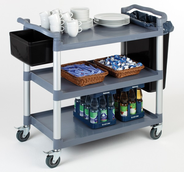 Tarjoiluvaunu 3 tasoa 108 x 50 cm, korkeus 96 cm alumiini/PP-muovi, siniharmaa