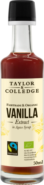VegaaninenTaylor&Colledge vaniljatuotteet ovat erittäin korkealaatuisia luomutuotteita. Tuotteiden vanilja on tuotettu eettisesti, kestävästi ja reilusti ympäristöä ja viljelijöitä kunnioittaen. Vanilla Extract -uute sopii käytettäväksi leivontaan, smoothieihin, juomiin, puuron ja jogurtin maustamiseen sekä suolaisiin keittoihin ja pataruokiin. Annostelusuositus: 1 tl / 200g, tai maun mukaan. Tuote on Fairtrade-sertifioitu.