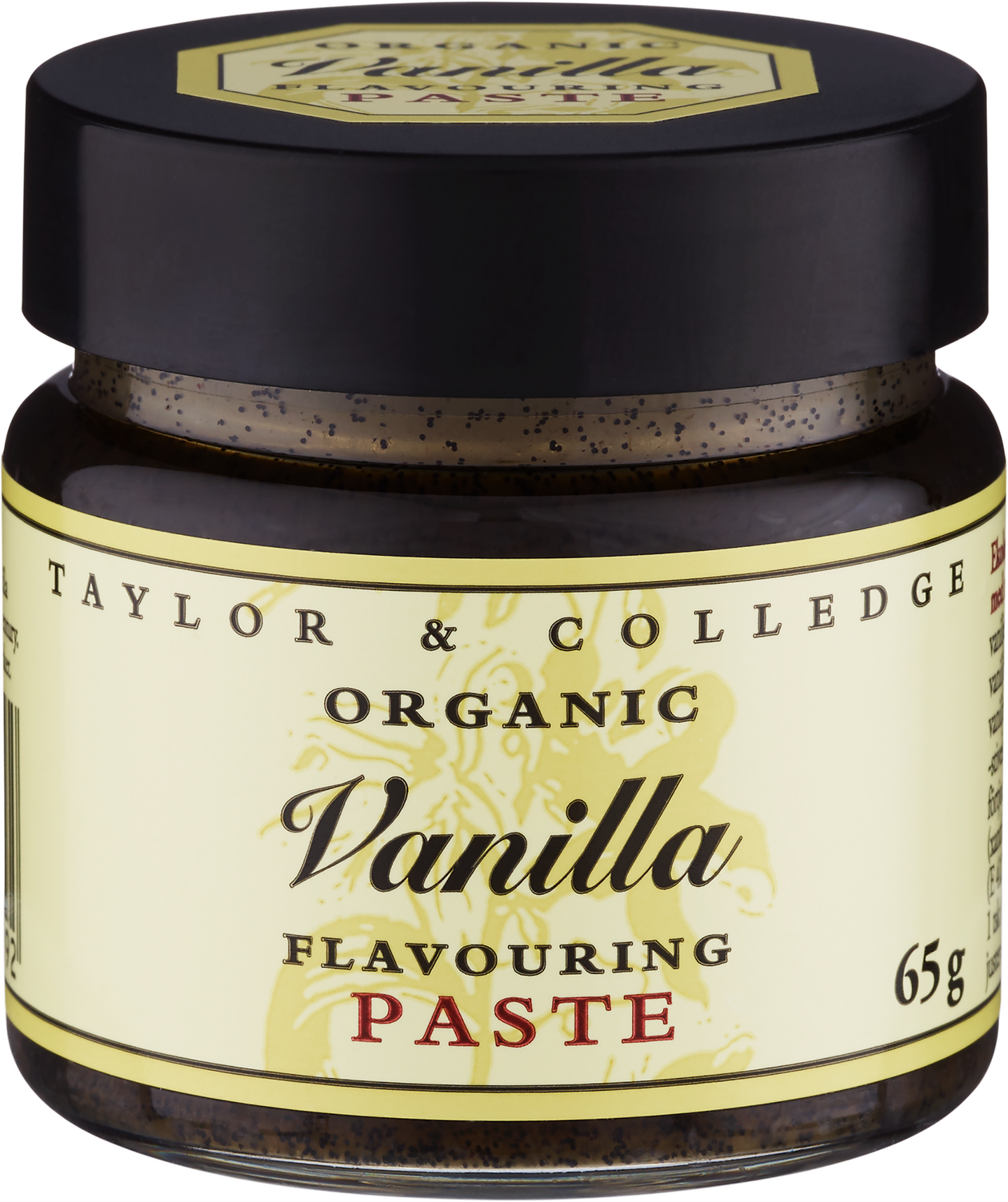 Taylor&Colledge vaniljatuotteet ovat erittäin korkealaatuisia luomutuotteita. Tuotteiden vanilja on tuotettu eettisesti, kestävästi ja reilusti ympäristöä ja viljelijöitä kunnioittaen. Vanilla Paste on luontaisia aromeja sisältävä vaniljatahna leivonnaisten, jälkiruokien ja ruokien maustamiseen. 1 tl vastaa yhtä vaniljatankoa.
