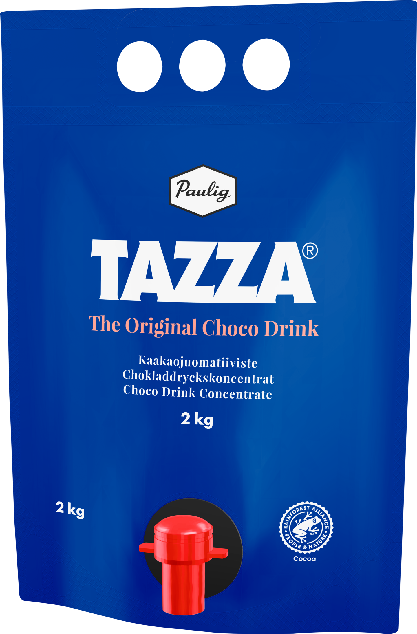 Tazza 2 kg pakkauksesta voit annostella Tazza-tiivistettä kätevästi ja siististi pakkauksessa olevan hanan avulla. Ilmatiivis hanapakkaus pitää Tazza-kaakaon avaamisen jälkeen laadullisesti hyvänä pidempään. Tazza-kaakaotiivistettä voi käyttää kuumien ja kylmien kaakaojuomien valmistamiseen, annosten ja juomien näyttävään viimeistelyyn tai raaka-aineena leivonnassa. Veteen valmistettuna Tazza-kaakao on vähälaktoosinen.