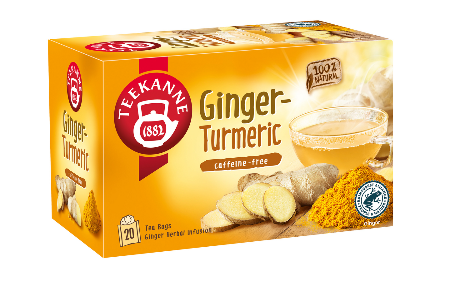 Teekannen inkivääri-kurkumatee on kofeiiniton yrttihauduke. Valmistettu 100% luonnollisista raaka-aineista.