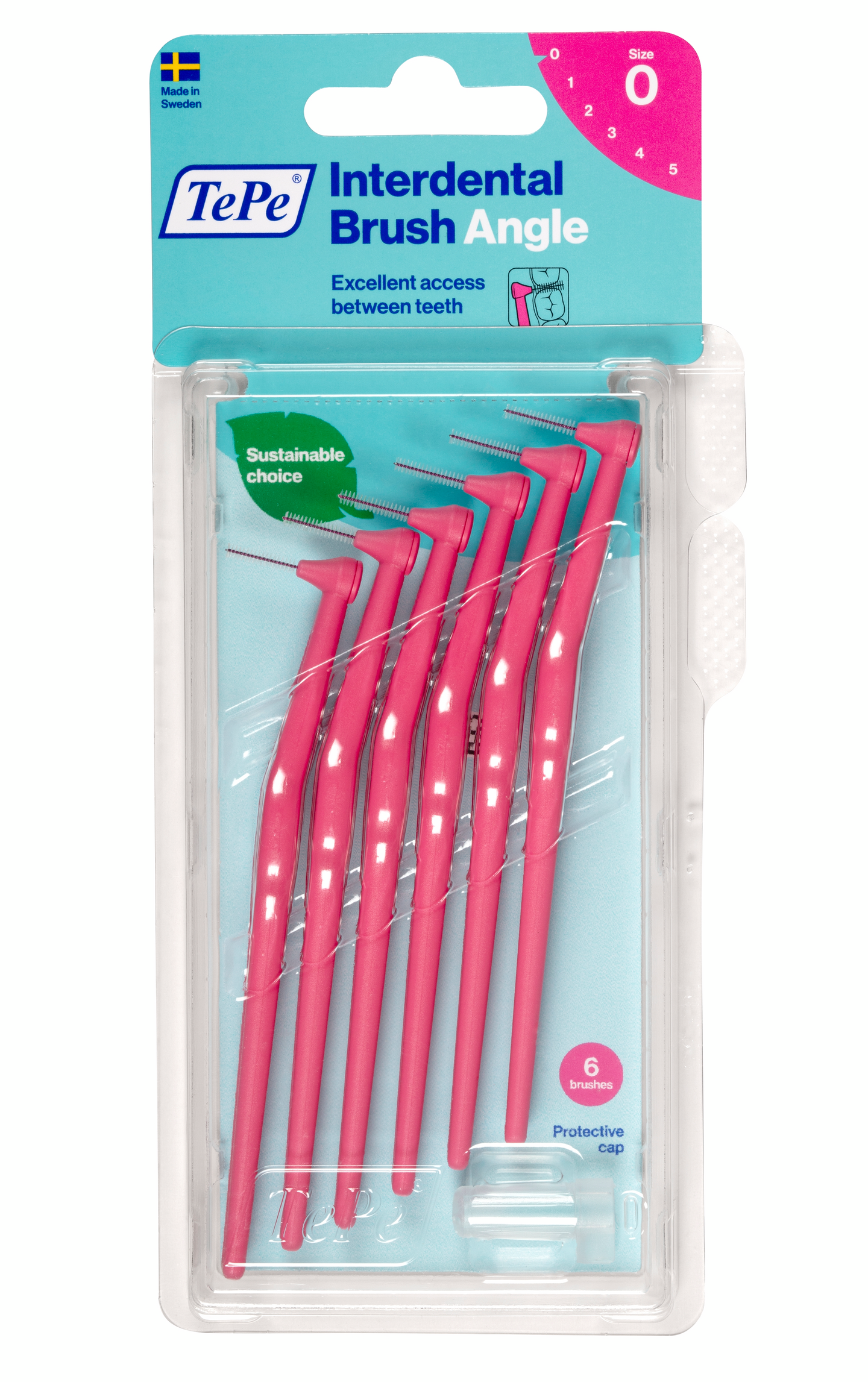 TePe Angle on suunniteltu hallittuun ja helppoon hammasvälien puhdistukseen. Harjan pää on pieni ja taivutettu jotta se ulottuu helpommin takahampaiden väliin, sekä suulaen että kielen puolelta. Pitkällä, litteällä varrella saa hyvän ergonomisen otteen. TePe Angle on hyvä valinta, jos käsimotoriikka on heikentynyt. TePe Angle löytyy kuudessa värikoodatussa koossa, jotta se sopii kaikkiin hammasväleihin. Värikoodit ovat samat kuin Original-sarjassa. Kaikki koot on varustettu muovipäällysteisellä metallilangalla, joten hammasvälien puhdistaminen on hellävaraista ja turvallista. Etuja: Pieni taivutettu pää optimaaliseen ulottuvuuteen, Pitkä, litteä varsi tekee harjasta helpon käsitellä, Muovipäällysteinen metallilanka hellävaraiseen puhdistukseen, Kuusi värikoodattua kokoa. Korvaamalla fossiiliraaka-aineen fossiilittomilla mäntyöljyillä olemme pienentäneet hammasväliharjan hiilijalanjälkeä 80 prosenttia – tuotteen laadusta, tehosta tai muotoilusta tinkimättä. Valmistettu Ruotsissa.