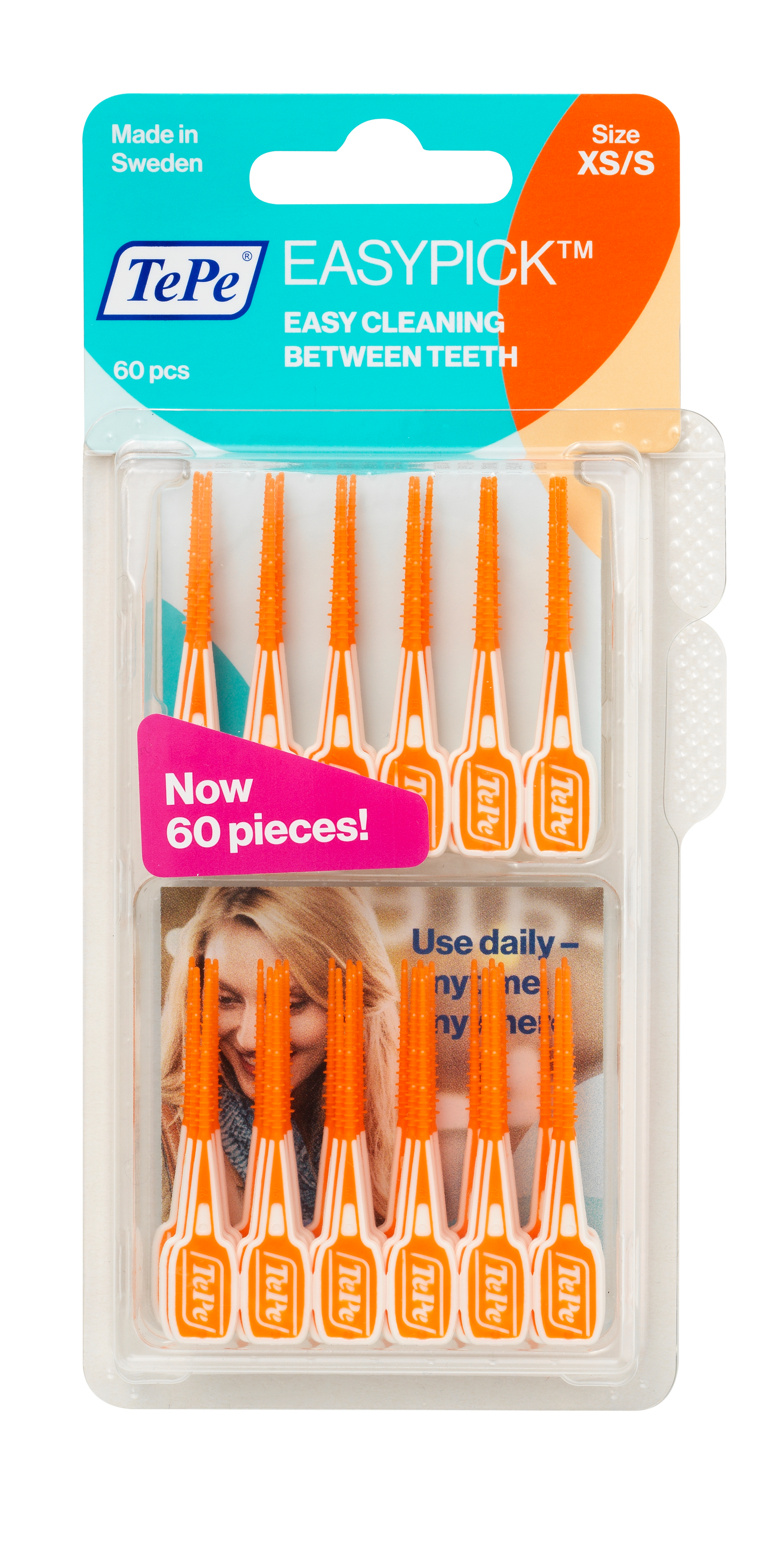 TePe EasyPick™ on uuden sukupolven hammastikku. Kartiomaisesta tuotteesta on saatavana kolmea eri kokoa, kaikille hammasväleille löytyy oikea vaihtoehto. Päivittäin käytettynä hammastikku pitää sekä ikenet että hampaat terveinä ja puhtaina. TePe EasyPick™ on erittäin helppokäyttöinen ja tehokas tuote hammasvälien puhdistukseen. Ainutlaatuisen materiaaliyhdistelmän ansiosta se on kestävä ja miellyttävä käyttää. TePe EasyPick™ on kehitetty läheisessä yhteistyössä hammaslääketieteen asiantuntijoiden kanssa. Valmistettu Ruotsissa. * Limittäiset kartiokoot sopivat erikokoisiin hammasväleihin. * Ainutlaatuisen muotoilun ja silikonipinnoitteen ansiosta puhdistus on miellyttävää ja tehokasta. * Helpottaa myös oikomiskojeiden käyttäjiä suuhygienian ylläpidossa.