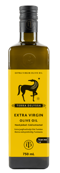 Terra Delyssa Extra neitsytoliiviöljy on korkealaatuinen, maailmanluokan oliiviöljy 100% Tunisiasta. Öljyssä on mieto ja pehmeä maku, ja se sopii mainiosti käytettäväksi niin arjessa kuin juhlissa. Oliivit ovat käsin kerättyjä, eivätkä sisällä kasvintorjunta-aineita. Tyylikäs lasipullo säilyttää öljyn laadun ja kaappaa huomion niin kaupassa kuin kotikeittiössä.