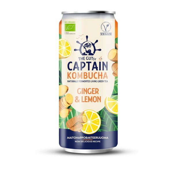 The GUTsy Captain Kombucha Ginger Lemon on inkiväärin ja sitruunan makuinen, herkullinen luontaisesti kupliva juoma, joka valmistetaan käsin Portugalin länsirannikolla. Kombucha on täysin luonnollinen vatsaystävällinen maitohappobakteerijuoma. Kombucha valmistetaan makeutetusta luomuteestä fermentoimalla eli hapattamalla. Näin syntyy virkistävä, luonnollisesti hiilihapollinen juoma. Kombucha sopii loistavasti janojuomaksi, ruokajuomaksi tai vaikka juhlajuomaksi.