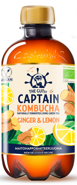 Herkullinen inkiväärin ja sitruunanmakuinen, luontaisesti kupliva juoma, joka valmistetaan käsin Portugalin länsirannikolla. Jokainen pullo valmistetaan ja käytetään The Gutsy Captain Kombuchan oman viljelmän avulla korkealaatuisista luomuraaka-aineista.
