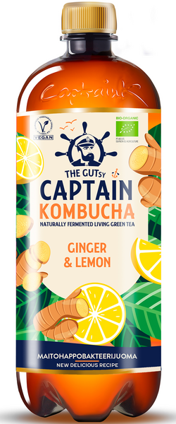 The GUTsy Captain Kombucha Ginger Lemon on inkiväärin ja sitruunan makuinen, herkullinen luontaisesti kupliva juoma, joka valmistetaan käsin Portugalin länsirannikolla. Jokainen pullo valmistetaan ja käytetään The Gutsy Captain Kombuchan oman viljelmän avulla korkealaatuisista luomuraaka-aineista. Nyt myös isossa koossa, josta riittää jaettavaksikin! Kombucha on täysin luonnollinen vatsaystävällinen maitohappobakteerijuoma. Kombucha valmistetaan makeutetusta luomuteestä fermentoimalla eli hapattamalla. Näin syntyy virkistävä, luonnollisesti hiilihapollinen juoma. Kombucha sopii loistavasti janojuomaksi, ruokajuomaksi tai vaikka juhlajuomaksi.