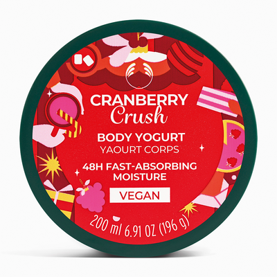 Anna ihollesi annos kevyttä kosteutusta Cranberry Crush Vartalo Jogurtilla. Nopeasti imeytyvä geelivoide-koostumus imeytyy heti, jopa kosteaan ihoon, ja antaa 48 tunnin kosteutuksen. Täynnä jääkarpalon, veriappelsiinin ja mintun lehtien eloisaa tuoksua, se on kuin joulu purkissa. Täydellinen aamuihin, suihkun jälkeisiin rutiineihin tai aina kun tarvitset nopean annoksen kosteutta.