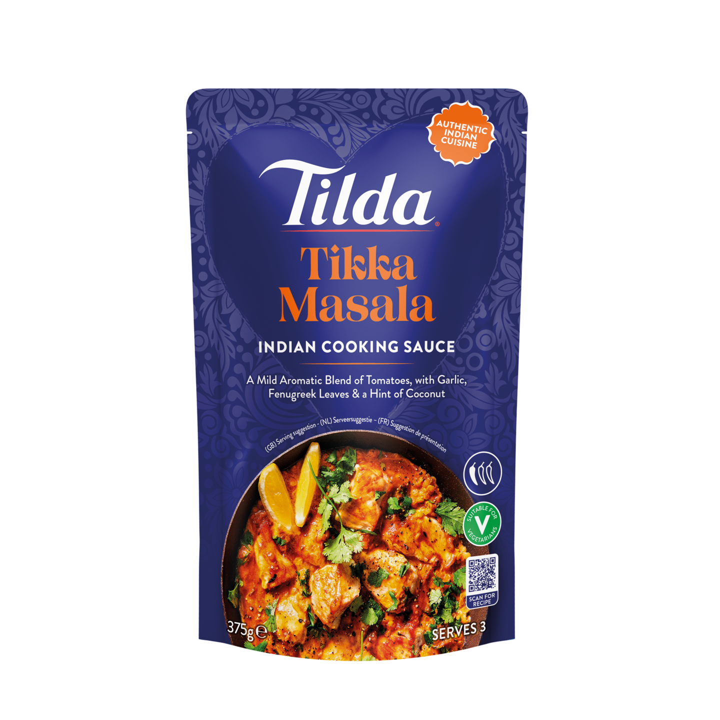 Tikka Masala on suosittu intialainen ateriakastike, alun perin Punjabista kotosin. Tämä resepti on brittiläinen versio intialaisesta butter chicken -klassikosta, ja se kehitettiin Skotlannin Glasgow'ssa. Oranssi, aromaattinen kastike on mieto ja valmistettu tomaatista, valkosipulista, sarviapilasta ja kookoksesta. Täydennä ateria rikastamalla kastiketta kanalla, kookosmaidolla, punaisilla linsseillä ja korianterilla. Kastike on valmis lämmitettäväksi, eli paista vain kana tai muu proteiini kuten tofu tai paneer juusto ja lisää kastike ja hauduta kypsäksi.