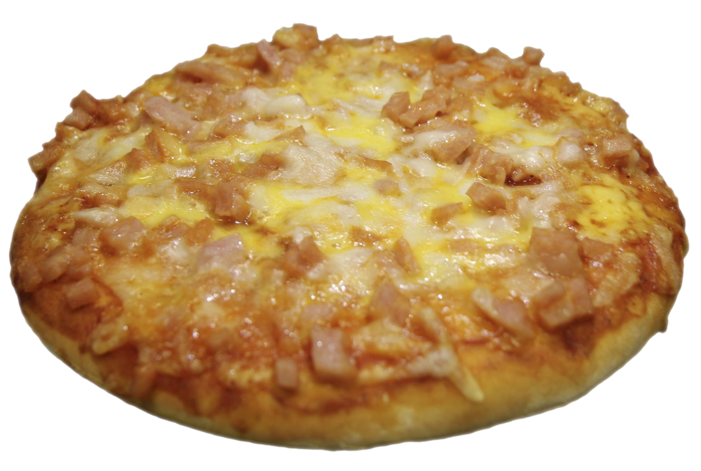 61,4 % pizzapohja (VEHNÄjauho, vesi, hiiva, rypsiöljy, VEHNÄgluteeni, suola, emulgointiaine (E 472e), stabilointiaine (E 412), jauhoparanne (E 300)), 13,6 % tomaattikastike (vesi, tomaattipyree, sokeri, suola, sakeuttamisaine (E 1422), valkosipuli, oregano, basilika, meirami), 11,9 % kinkku johon lisätty vesi (60 % sianlihaa, vesi, suola, perunatärkkelys, dekstroosi, stabilointiaine (E 407), antioksidantti (E 316), säilöntäaine (E 250), savuaromi, aromi), 8,9 % MOZZARELLA, 4,2 % cheddar (MAITO, suola, hapate (MAITO), juoksute, väri (E 160a)).