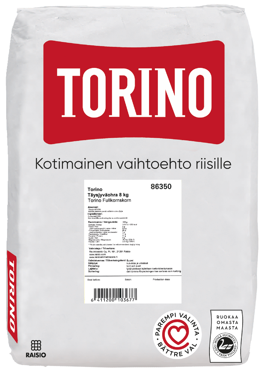 VegaaninenKorvaa riisi kotimaisella ohralla! Runsaasti kuitua sisältävä täysjyväohra on terveellinen aterianlisäke, jota voi käyttää kuten riisiä. Kypsymisaika noin 8 min. Litrapaino 610 g/l.