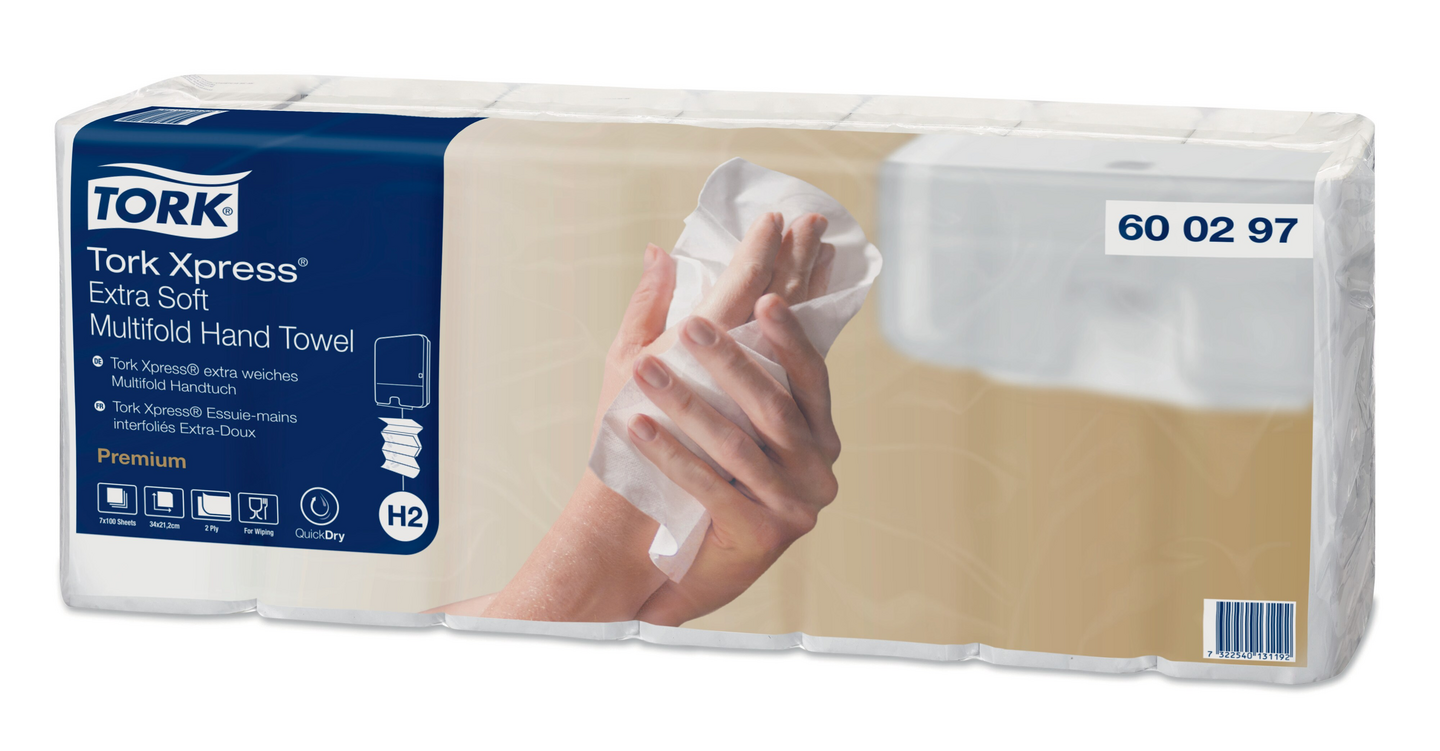 Tarjoa asiakkaillesi mukavaa ja laadukasta käsienkuivausta suurella ja pehmeällä Tork Xpress® Extra Soft Multifold Premium laatuisella käsipyyhkeellä, joka on hellävarainen käsille ja tuntuu erittäin laadukkaalta. Käsipyyhkeet sopivat kohteisiin jotka haluavat tarjota asiakkaille sekä mukavuutta että hygieniaa. QuickDry™ merkki kertoo, että käsipaperi on kestävin ja imukykyisin paperimme joka kuivaa tehokkaasti pienentäen käsipyyhkeestä syntyvää jätemäärää. Käsipyyhe annostuu Tork Xpress® Multifold -käsipyyheannostelijasta arkki kerrallaan mikä auttaa vähentämään kulutusta ja parantaa hygieniaa. Käsipaperissa kaunis Tork lehtikuviointi tekee ylellisen vaikutelman. Pieni pakkauskoko säätää varastointitilaa.