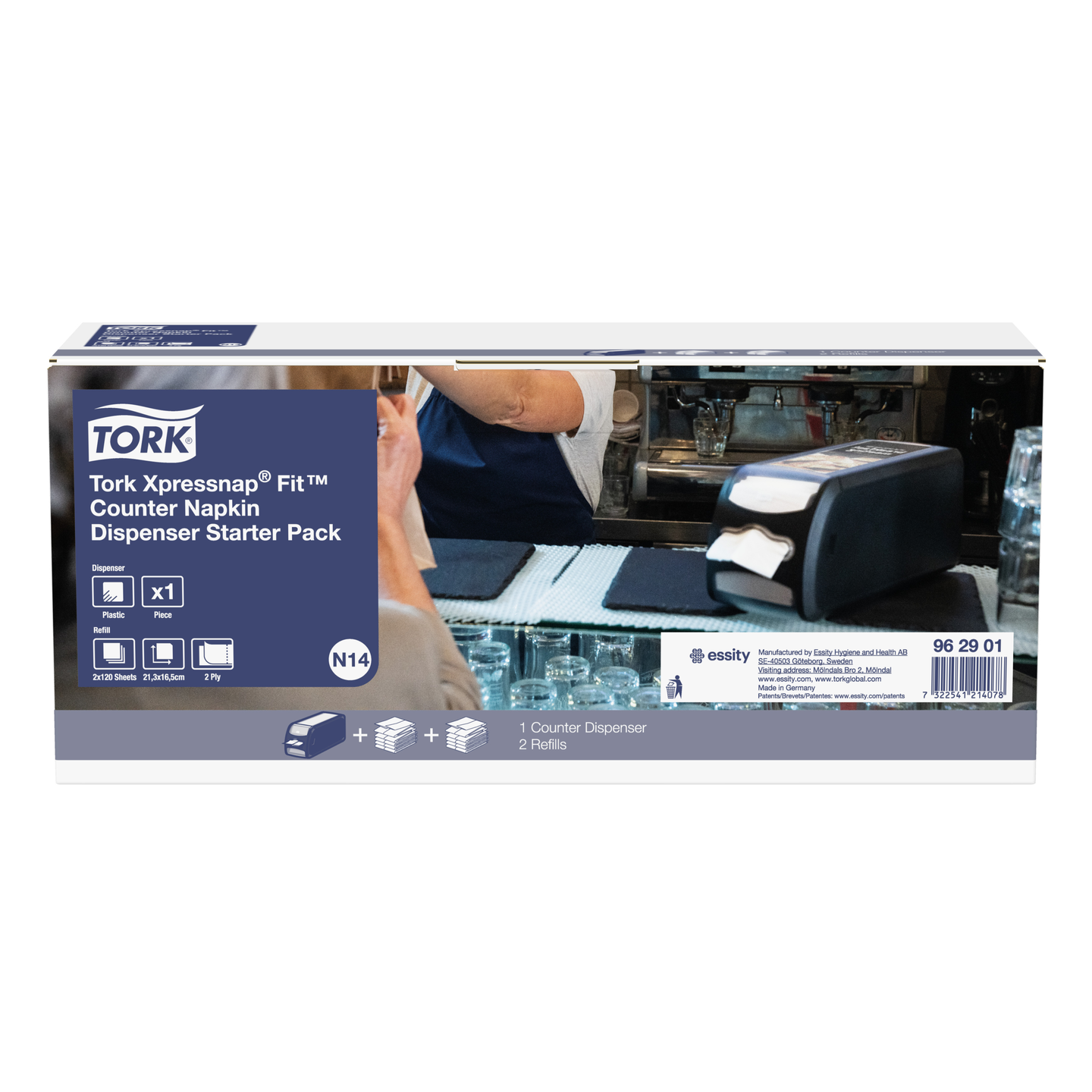 Tork Xpressnap Fit lautasliina-annostelija Starterpack musta linjastoannostelija+liina N14