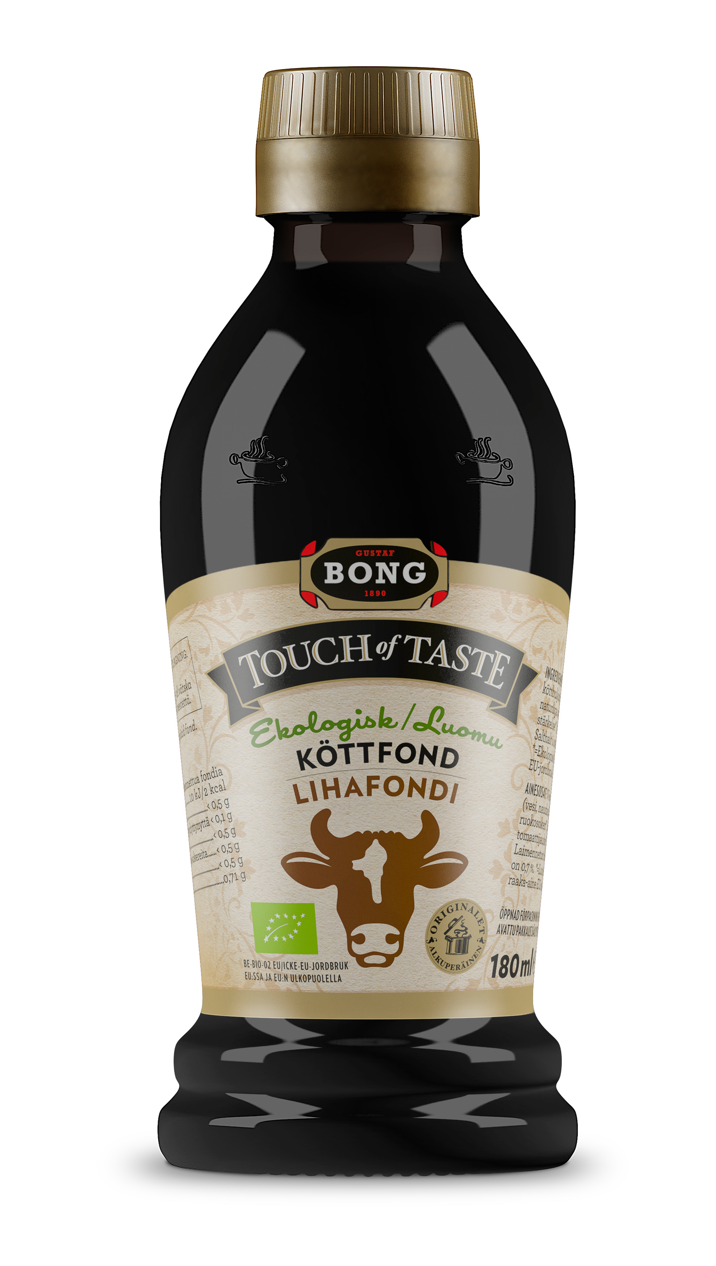 Touch of Taste Luomu Lihafondi saa täyteläisen makunsa paahdetuista luista – luonnollinen fondi vahvalla lihan maulla. Fondi korostaa makua pitkään haudutetuista lihapadoista nopeasti valmistuviin lihapulliin ja auttaa tekemään arkiruoasta maukkaampaa. Luomu Lihafondimme sopii myös lihan marinointiin.