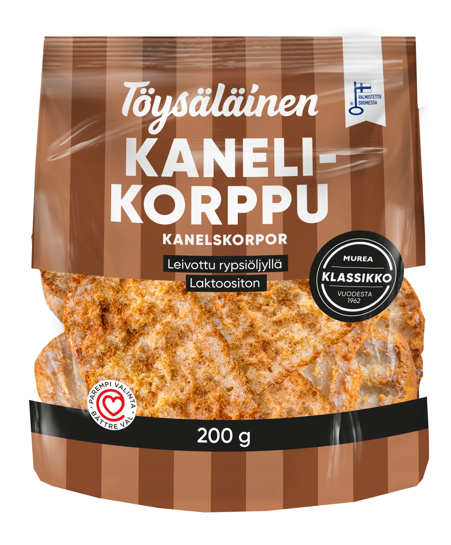 LaktoositonTöysäläinen Kanelikorppu on huippusuosittu herkku, joka yhdistää rapeuden ja murean koostumuksen. Rypsiöljyyn leivottu ja runsaskuituinen korppu sopii täydellisesti niin arkeen kuin herkutteluhetkiin. Lisäksi se on laktoositon ja Sydänmerkki-tuote, eli terveellisempi valinta ilman kompromisseja maussa. Kasta korppu kahviin ja nauti perinteisestä makuelämyksestä – juuri niin kuin ennen vanhaan!