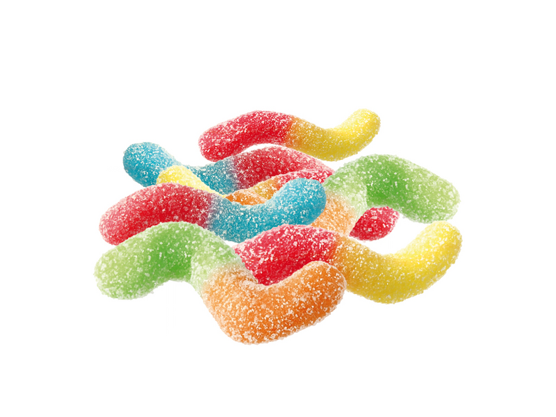 glukoosisiirappi, sokeri, muunnettu perunatärkkelys, liivate, hapot: sitruunahappo, maitohappo, omenahappo, happamuudensäätöaineet: kalsiumsitraatit, natriummalaatti aromit, väri: karmiini, kurkumiini, briljanttisininen FCF