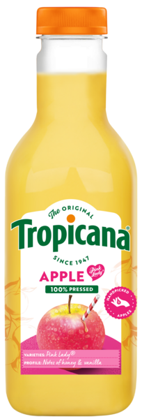 VegaaninenTropicana Pink Lady Apple -mehu on täynnä hienostunutta omenan makua jokaisella lasillisella. Sisältää paljon C-vitamiinia.