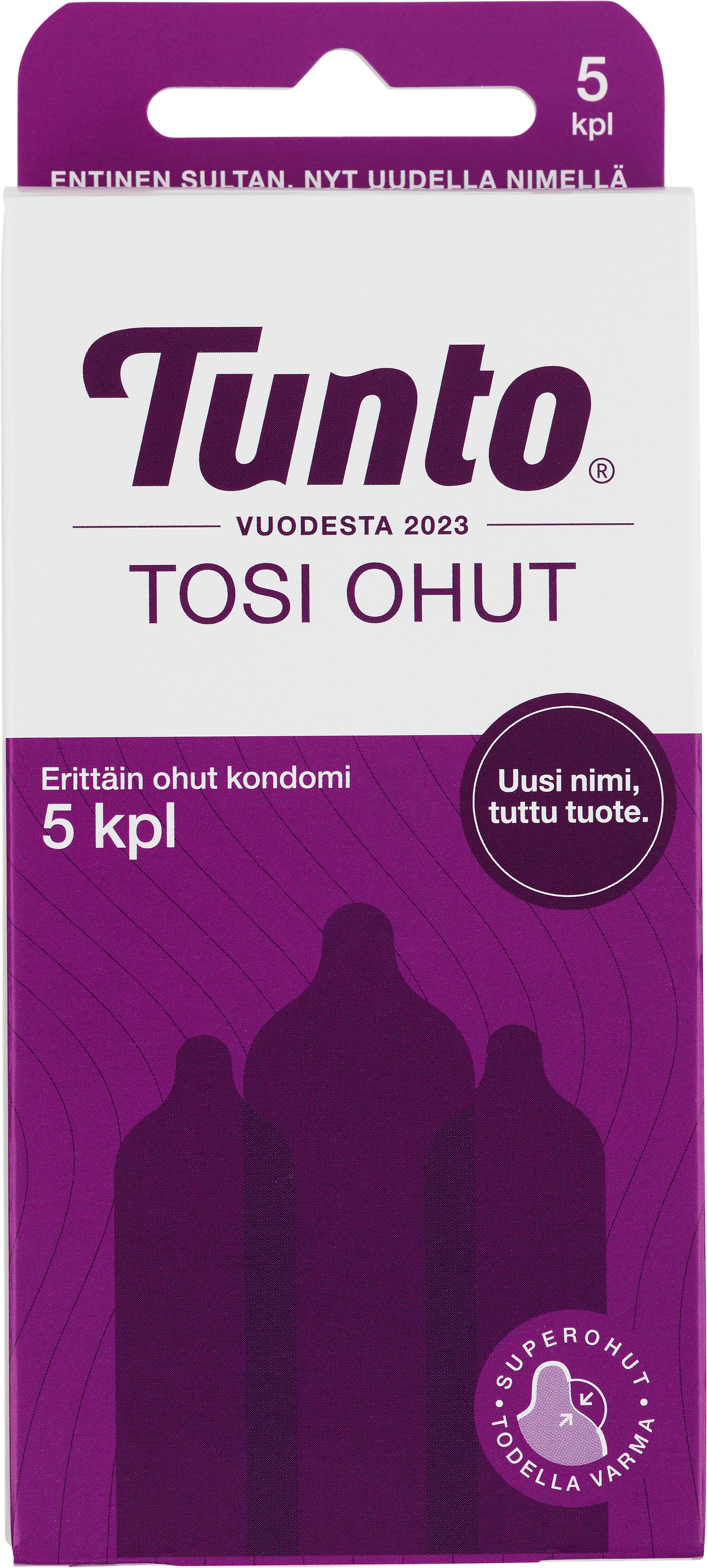 Uusi nimi, tuttu tuote! Tunto Tosi Ohut on superohut lateksikondomi, joka takaa luonnollisen läheisyyden tunteen. Ainutlaatuisella teknologialla Tosi Ohuesta on saatu paljon ohuempi, turvallisuudesta tinkimättä. Kondomi on väritön, sileäpintainen ja kyllästetty liukuvoiteella. 5 kpl pakkaus. Kondomin pituus on 180mm, ympärysmitta 104mm ja halkaisija 52mm.
